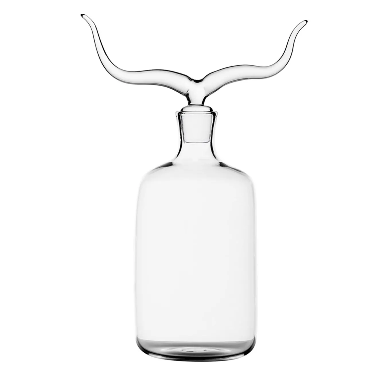 Part of the Trophy Bottles collection, one of the latest creations by Simone Crestani, this exquisite glass bottle features a stopper in the shape of an acorn. The stopper is decorated on top with a majestic set of buffalo antlers recreated in all their stunning details. Each trophy represents in detail the horns of a wild animal and dedicates a poetic hymn to the inhabitants of the most pristine nature.