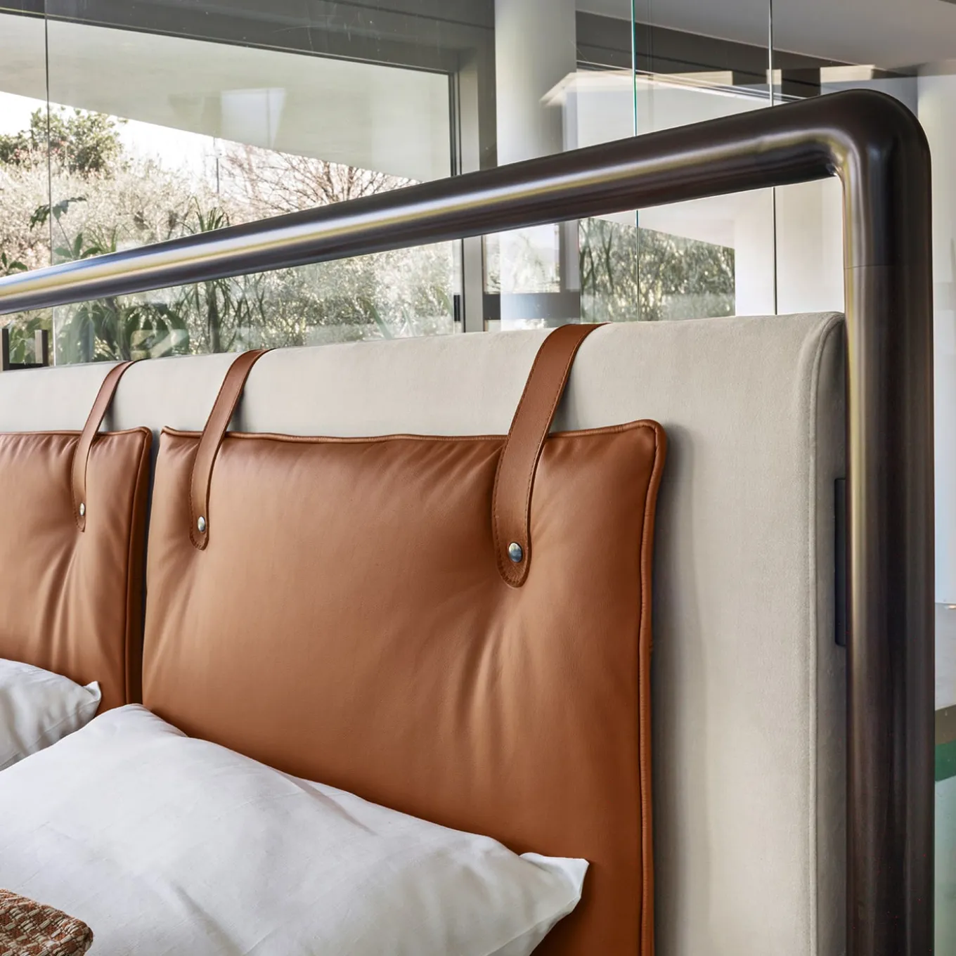 Named after the renowned museum in Paris, this spectacular bed is distinguished by timeless elegance and refinement. Crafted of lightened MDF with a solid wood frame and matte dark beechwood footboard, it is enriched with softly padded headboard cushions, upholstered with fine leather. The structure is filled with multi-density polyurethane foam, lined with polyester wadding, and upholstered with fabric. Bed linen and decorative pillows on request, please contact the Concierge for details.
