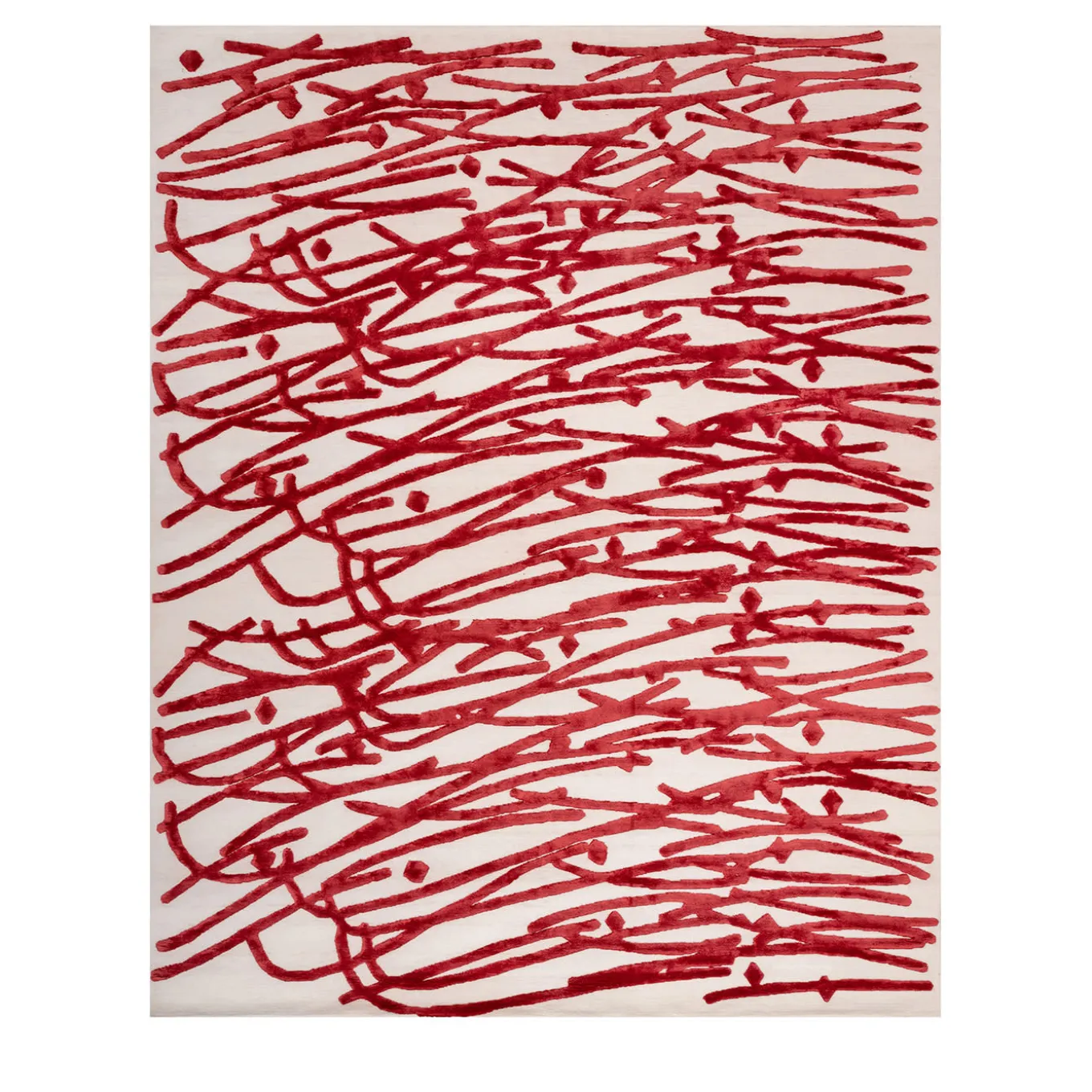 Inspired by the intricacies of the Mattar Font, the Love Rug seamlessly merges the decorative allure of Arabic characters with the artistic essence of Mattar Bin Lahej’s style, infused with Japanese influences. Crafted by master weavers in Nepal, this exquisite rug features a design woven at 152,000 knots per square meter using a blend of 50% silk and 50% Himalayan wool. What appears as a graphic motif is, in fact, the word “Love” (حب), intricately embroidered to captivate in any decor.