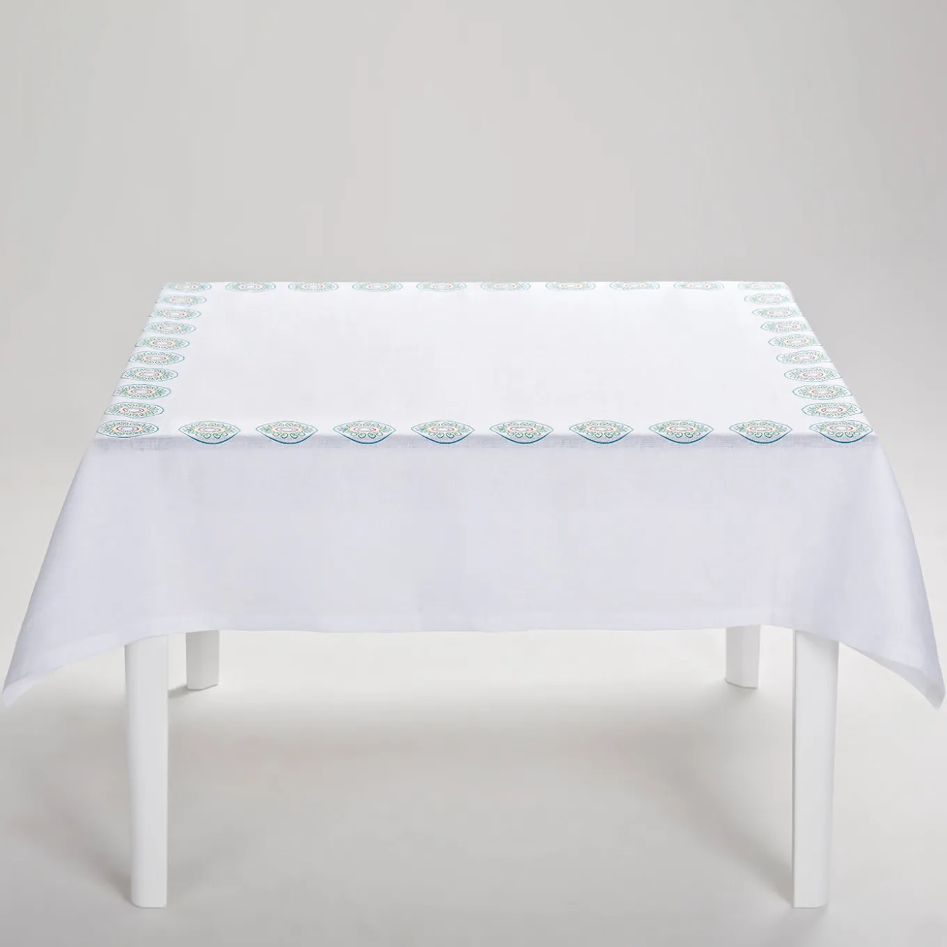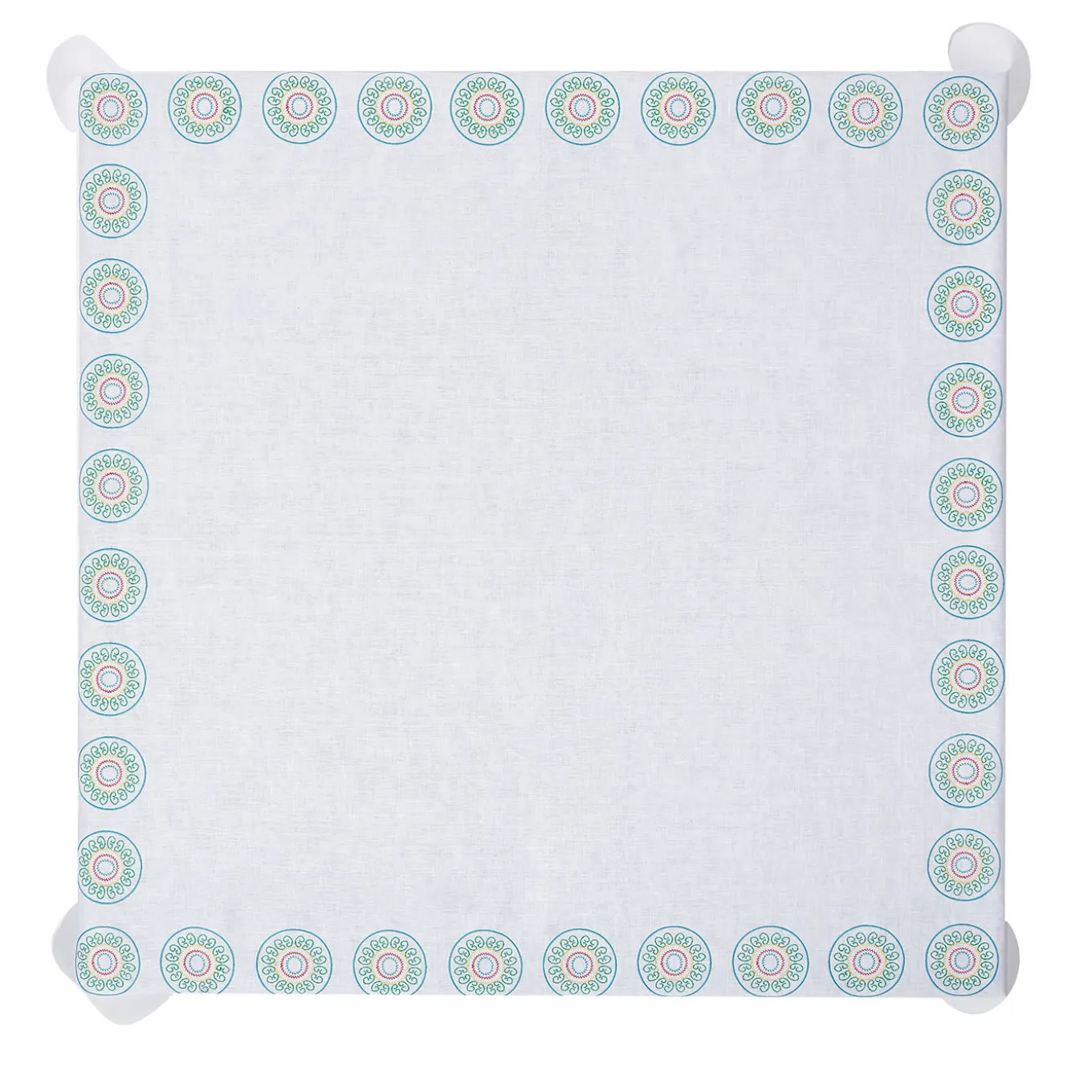 This fine tablecloth hand-sewn from Masters of Linen-certified, white linen will imbue any setting with its evocative and festive flair. The deftly hand-embroidered, polychrome pattern reproduces the astonishing illuminations typically set up in the streets and yards of Apulian towns during local festivals. Exquisitely embroidered using prized Mako cotton, this tablecloth is a unique tableware piece also available in different sizes. Please ask the Concierge for details and pricing.