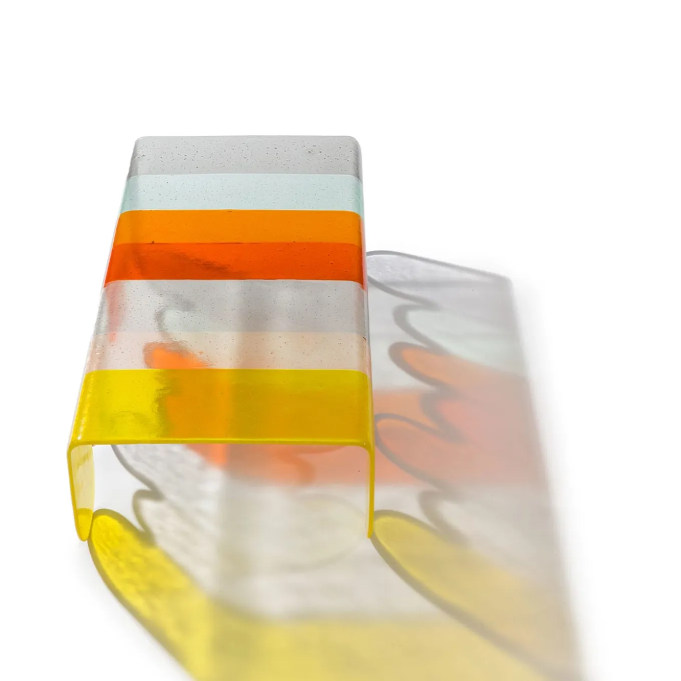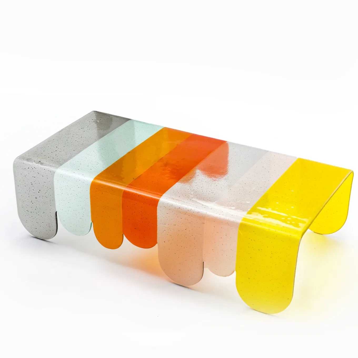 An old nursery rhyme quotes: “Songs and loughs, lights and clamors in a color’s kaleidoscope“. In his “Luna Park” coffee table, Alessandro Zambelli infuses colors, sounds, scents, and flavors of a country fair, with carousels, lights, and sweets’ stands. Realized with an innovative technique of glass fusion. Please, ask the Concierge Service for any color customizations.