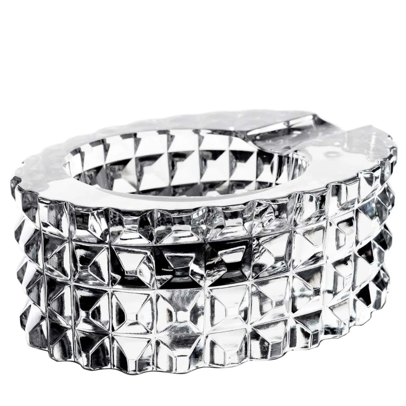 This superb object of functional decor is a refined example of exquisite craftsmanship. Its oval body is crafted entirely of crystal with a distinctive texture created by a square pattern that will reflect the surrounding light creating a sophisticated brilliance anywhere in the house. Part of the Luxe’ collection, this unique piece can be paired with the lighter in the same series for a complete set.