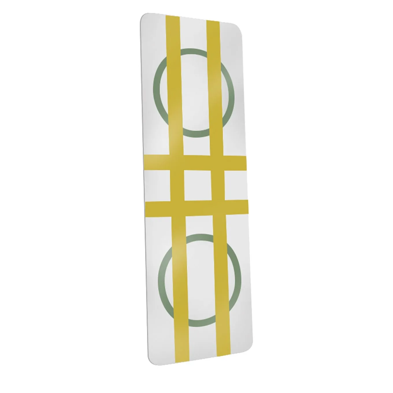 This mirror features extra clear glass with a unique lacquered design in multiple colors, presenting a striking interplay of geometric shapes including circles and intersecting lines. Part of the MURALES series, it replaces traditional masonry with colored transparent surfaces that integrate sandblasted and lacquered motifs to creatively fragment reflections. This piece is customizable in size and color to suit various interior styles, combining artistic expression with functional design. For further information please contact the Concierge.