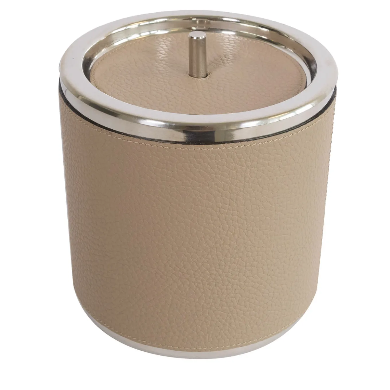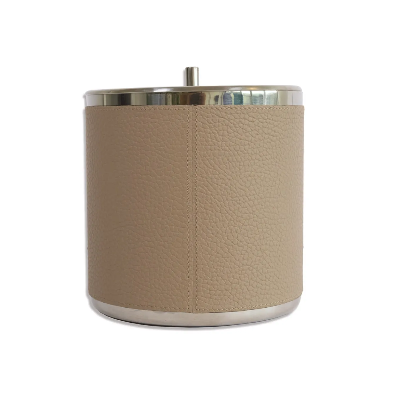This small yet iconic ice bucket from the Machiavelli series of precious designs will make an elegant addition during a special date. Fashioned of stainless steel, it is entirely covered by hand with soft and fine genuine full-grain leather, rendered in a beige tone. Available in 13 different colors upon choice or decor need, please consult the Artemest catalog for details.