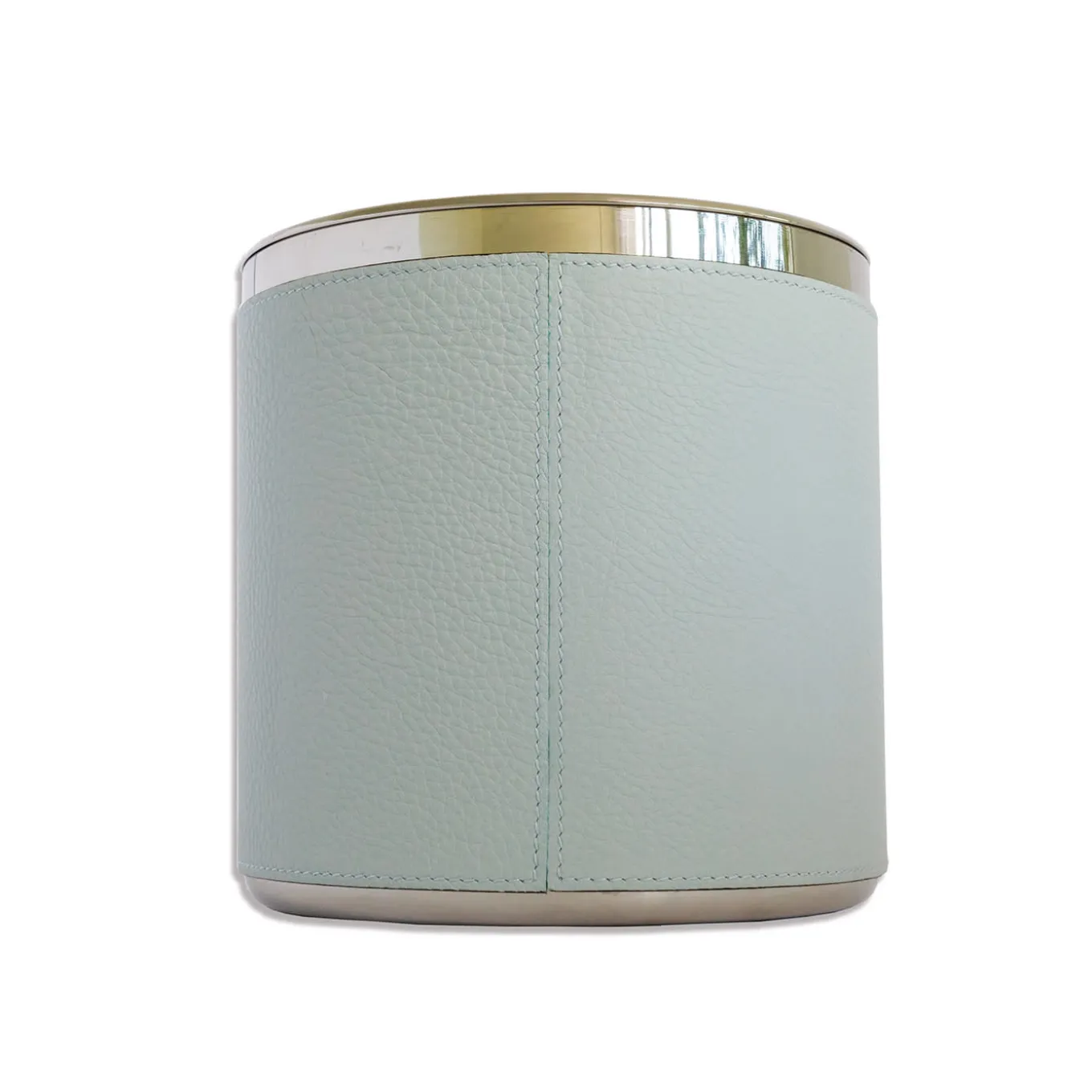 This extraordinary ice bucket from the iconic Machiavelli series of opulent designs features a simple yet stunning shape of timeless sophistication. Fashioned of stainless steel, it is covered by hand with precious full-grain leather rendered in a delicate light blue shade. Completed with lid. Available in 13 other colors, please check the Artemest catalog for details.