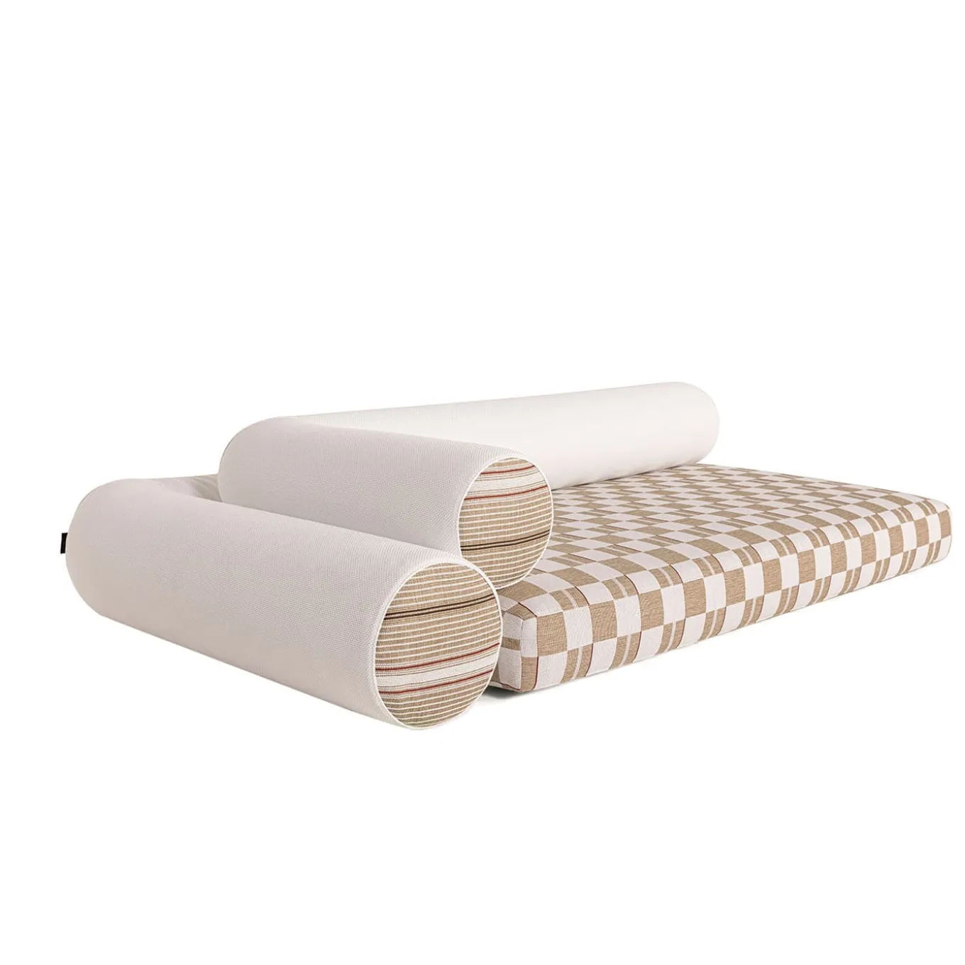 Majlis takes its name from a traditional space is use in Arab countries, dedicated to hospitability and conviviality. It is a modular seating system for outdoor use that features generous dimensions, rounded shapes and exceptional seating comfort. It is characterized by a large seat cushion embraced by two rolls that perform as the backrest, made in different sizes and densities. A breathable water-repellent fabric covers the insert. The price includes the decorative cushions, as shown in the image, and the protective cover for each module.