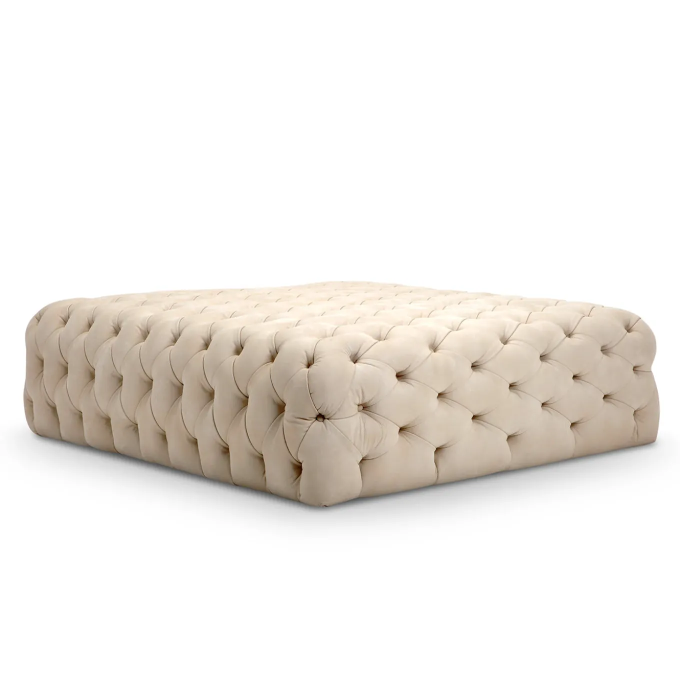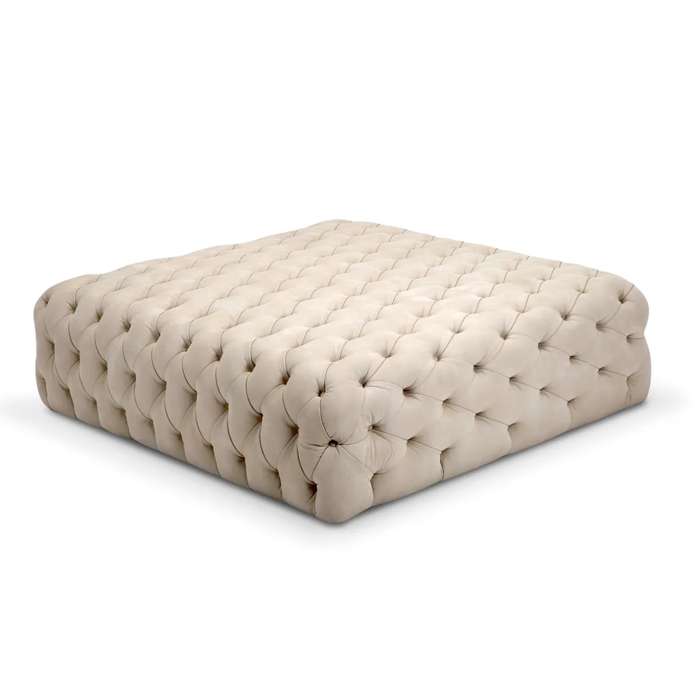 This tufted pouf is entirely padded in multi-density polyurethane foam to give a comfortable feel to its tailored look. The cover is in white Dacron, and the large plywood and fir frame is raised on PVC feet. Available in three sizes (75×75 cm, 100×100 cm and 120×120 cm), this large pouf can be used also as a coffee table.