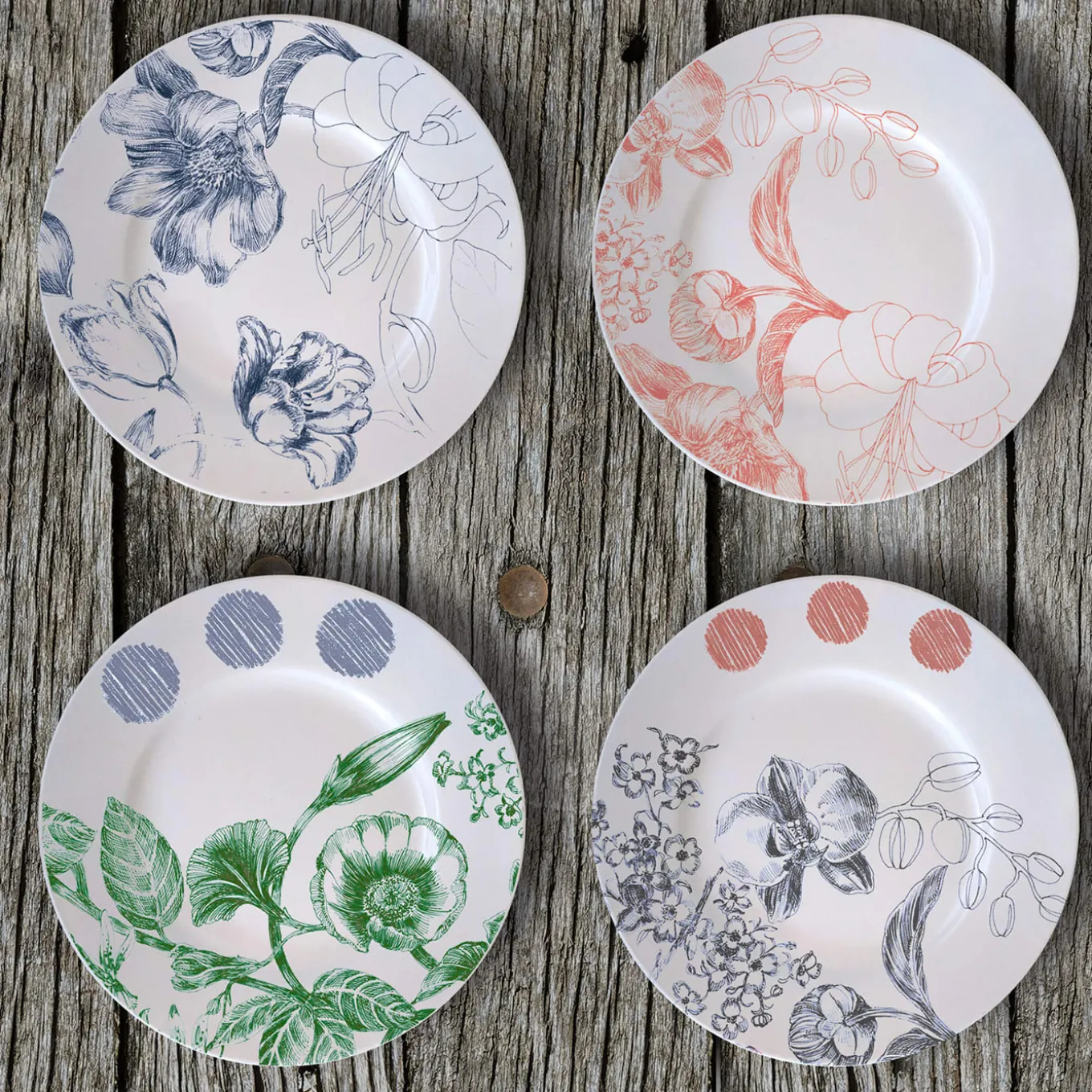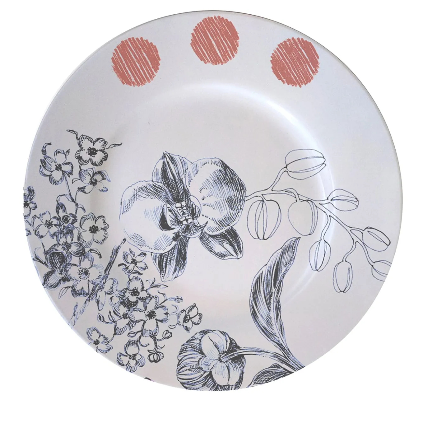 Delicately graced with a bluish floral decoration exuding a peaceful and soothing flair, this stunning set of two bread plates from the Marie Antoinette Collection is deftly handcrafted of first-rate porcelain and decorated by hand. To contrast the delicate lines of the floral motif, three red spots lend it a vivacious and dynamic allure.