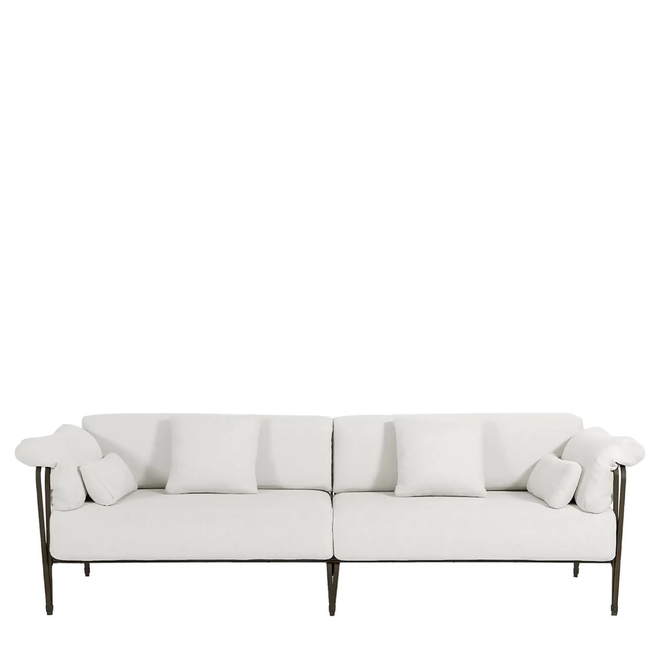 Transform your outdoor space into a calming oasis with the Marina Sofa. Its forged inox steel frame draws inspiration from classic Florentine designs, exuding a timeless allure that you will appreciate for years to come. Treated with a galvanized, powder-coated finish for optimal resistance, the frame is paired with white outdoor fabric upholstery for an elegant look.