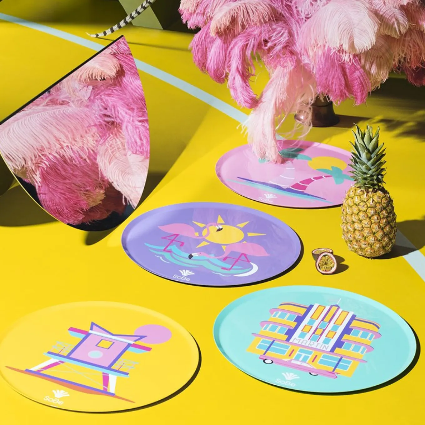 This limited edition tray from the SoBe collection was designed in collaboration with the children’s fashion brand Bianca&Noè. It features a striking Art Déco-inspired illustration of the iconic martin hotel in Miami, reflecting the city’s vibrant energy and architectural heritage. The tray combines functionality with a playful nod to 1930s Miami style, making it both a stylish and sustainable addition to tabletop serveware.