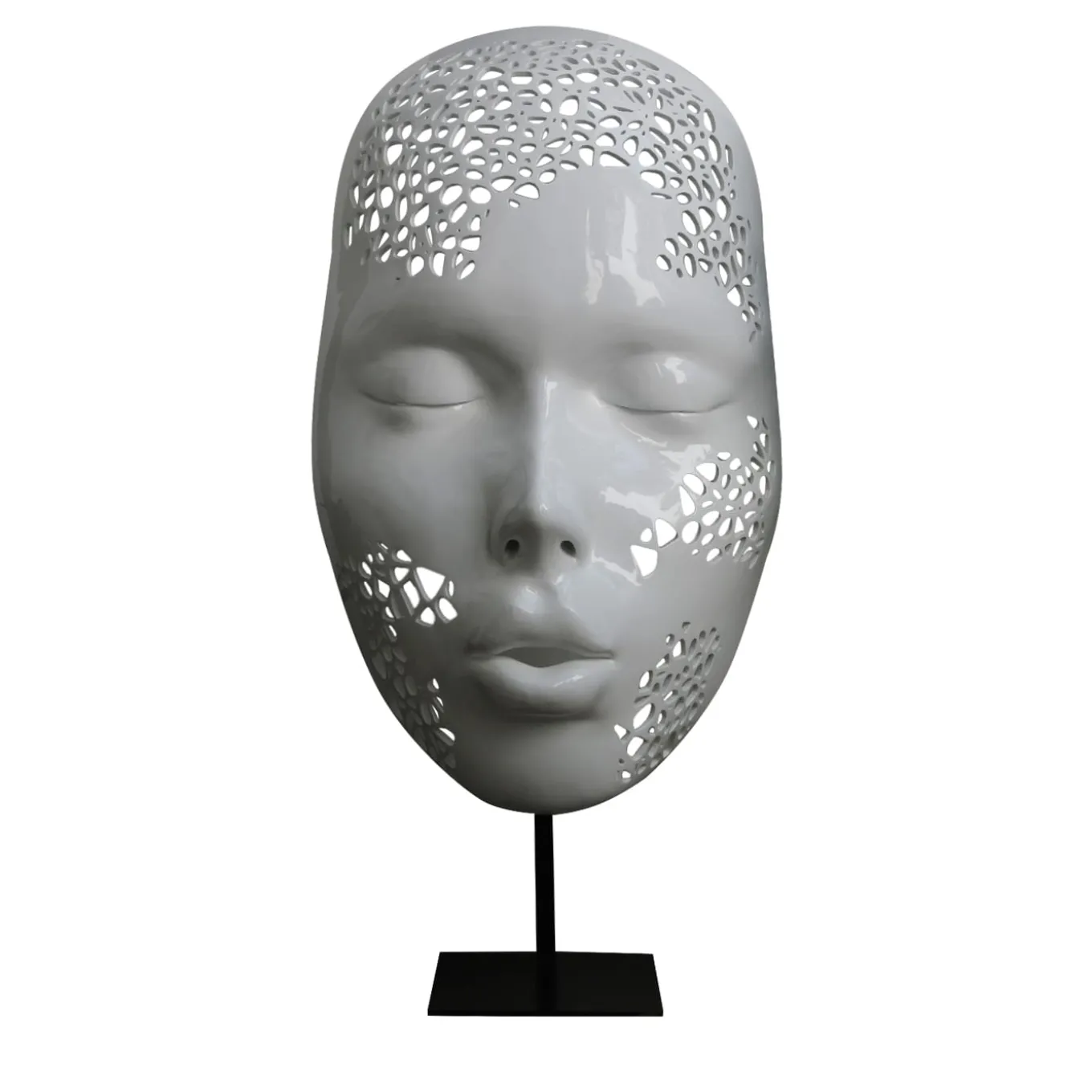 Inspired by the delicate interplay of love and conflict, “Mascherati Woman” merges advanced 3D printing with Italian craftsmanship. Limited to 9 pieces, this unique white sculpture, achieved thanks to intricate sandblasting, plastering, and hand-painting, captures moments of emotional revelation. Celebrating “Made in Italy,” this artwork invites viewers to interpret a couple’s intimate dance or a solitary journey of self-discovery—a captivating fusion of technology and artistry. It can be displayed on pedestal or as a free-standing piece.