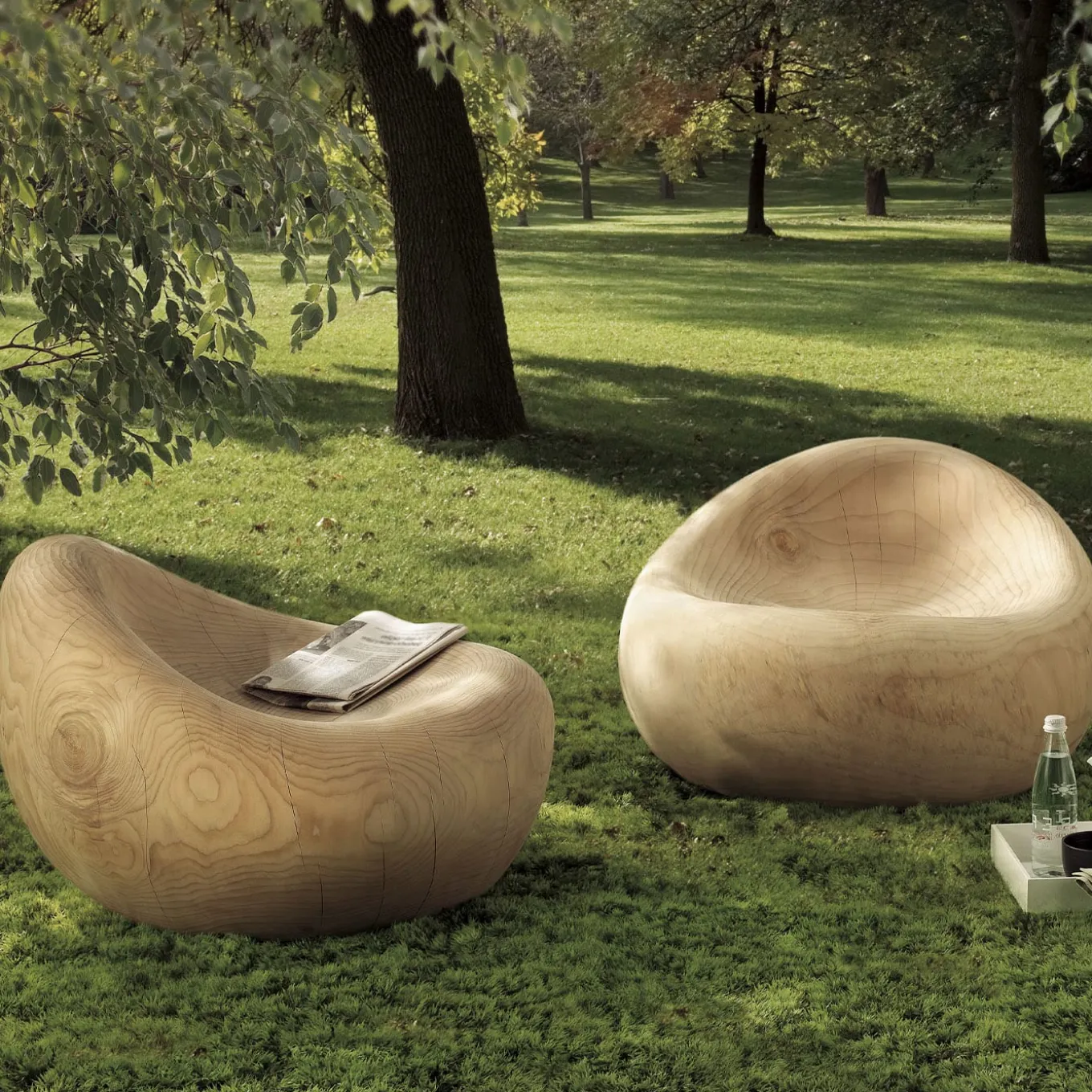 Fluid minimalism and rustic aesthetic converge in this stunning monobloc armchair, its perfectly ergonomic body reminiscent of a welcoming birds’ nest. Fashioned of raw cedar, it is an invitation to focus on its unrepeatable swirls and grain, traits further accented by thin natural cracks. Being seasoned wood, it may show color variations and possible cracks. Different versions can be found by browsing the Artemest catalog.