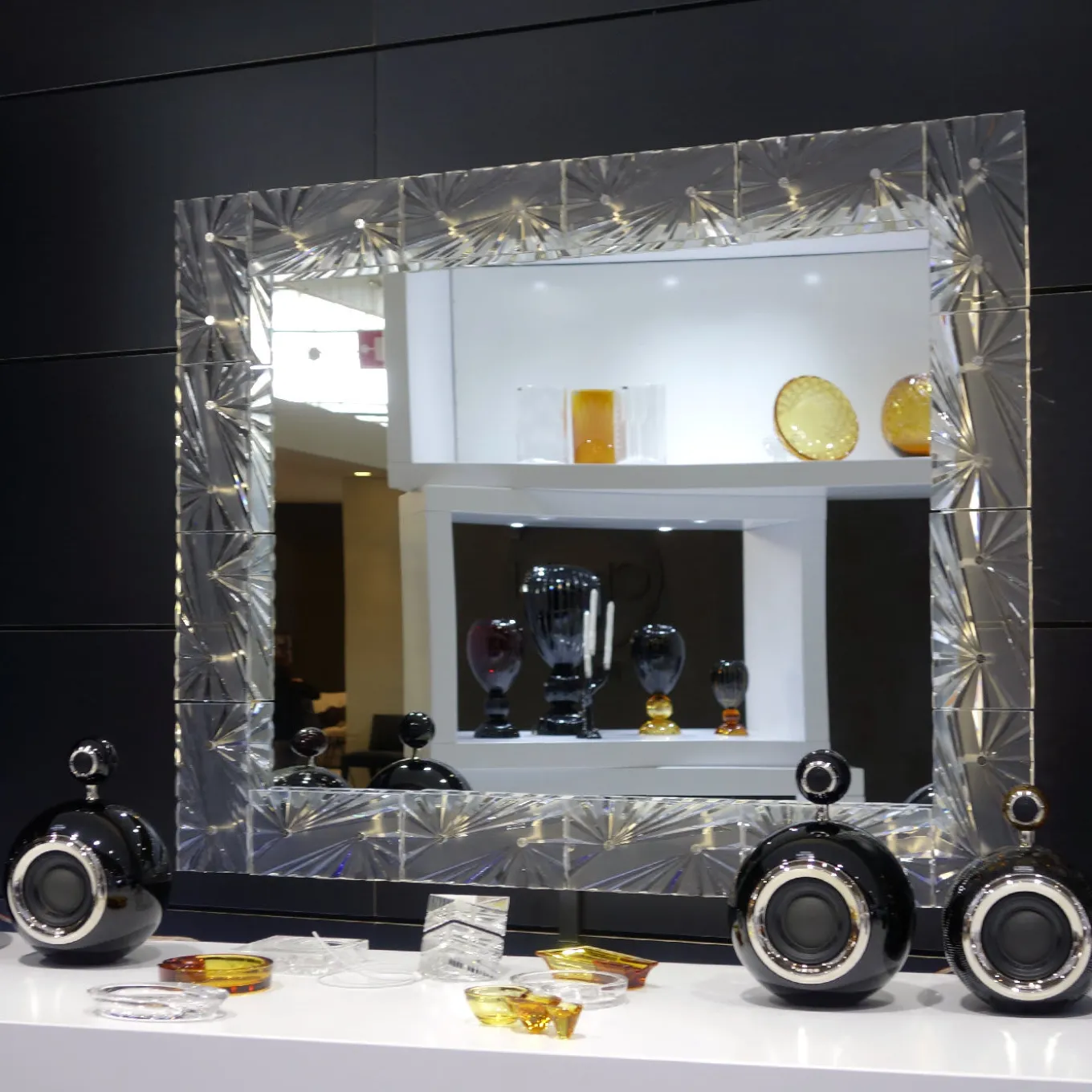 A new concept of loudspeaker system is now being presented: Mario Cioni Crystal Sound introduces Sphera, a new loudspeaker system. A speaker of high quality made with a precious material: lead crystal. The heart of the system is the crossover specially developed and built to exalt the physical characteristics of the material and its particular elasticity in order to enhance the best of the loudspeaker system capacities. Sphera is composed of two passive speakers equipped of tweeter for an aesthetic that spells and a sound that amazes. The large sphere is topped with a small one resting on a metal stand, with a chrome-finished round window for the speakers. The system includes: two passive woofer speakers, a tweeter, and a crossover for high-, mid-, and low-range frequencies. Ask the Concierge for technical specifications.