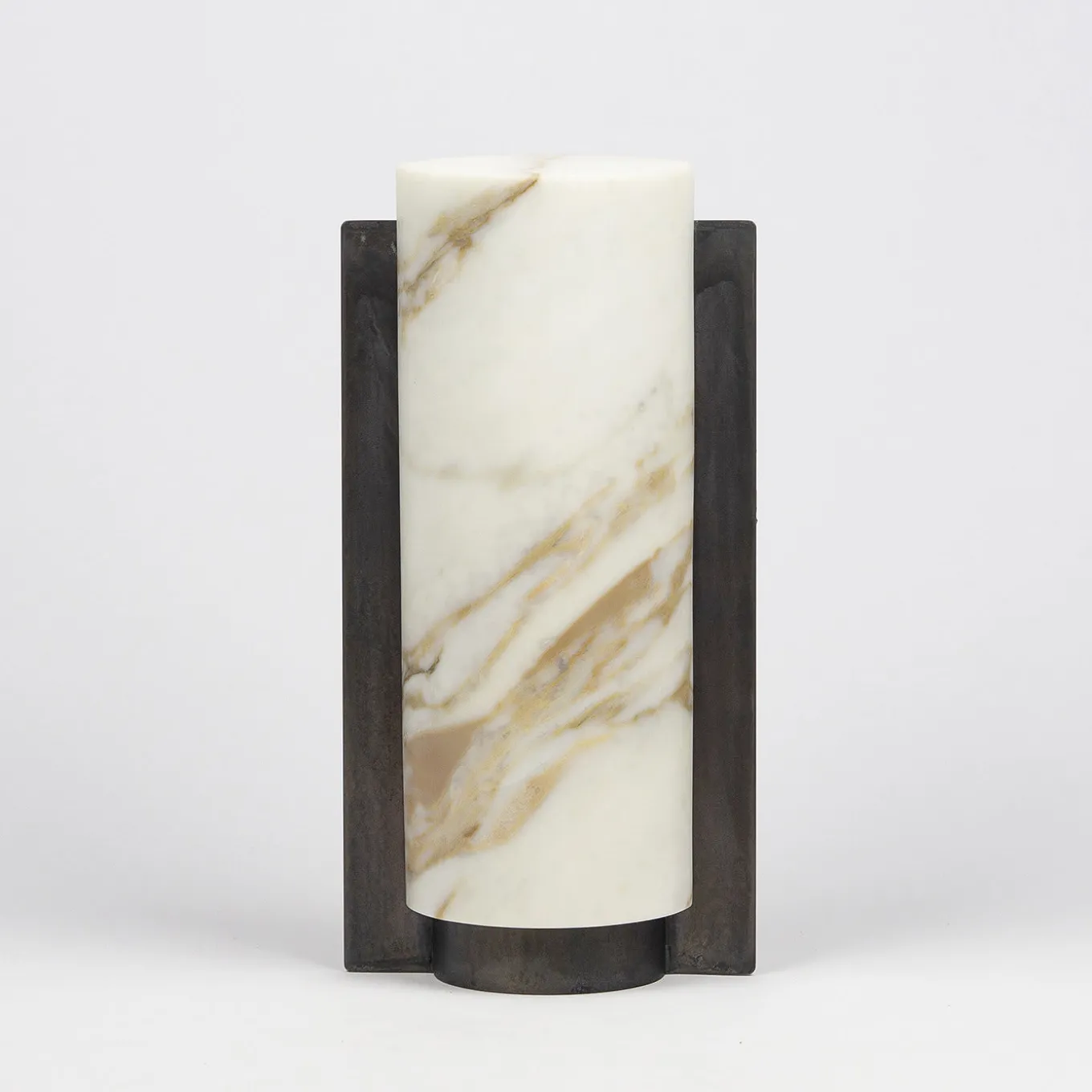 The interlocking of elements represents the boundary between inside and outside, closed and open, private and public. The mechanical act of opening and closing allows or denies access to a place, to contents to be protected, hidden or kept secret. A collection of containers composed of elements in Calacatta Oro marble and Jerissa stone and in natural metal and Corten.