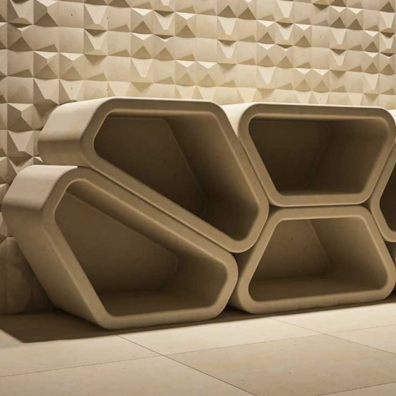 Playfully inspired by the rock walls typical of the Salento countryside, this modular bookcase was designed as a spot-on synthesis between art and functionality. The array of squarish Lecce limestone blocks composing its silhouette can be assembled and disassembled as desired to create refined customized arrangements. Spectacular and stately, the design ideally complements indoor and outdoor spaces alike.