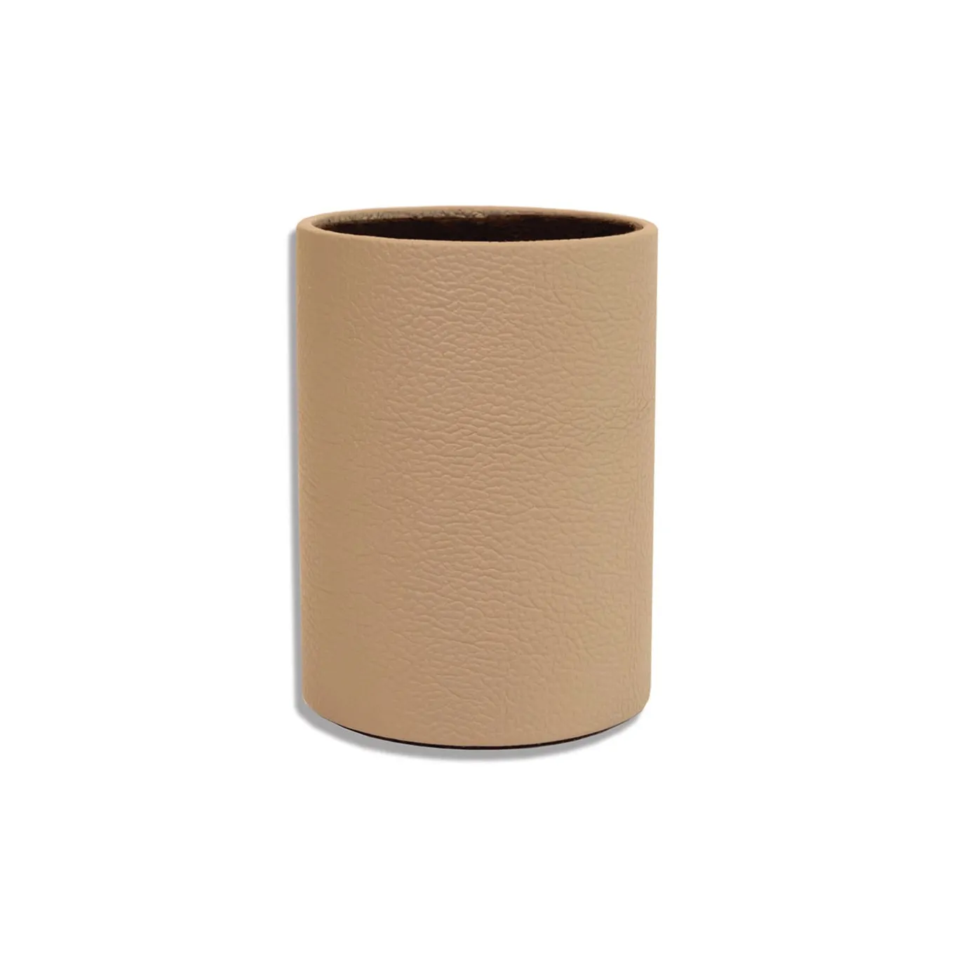 Boasting a handsome this leather pencil holder makes a sober yet sophisticated addition to a desk. The classic cup shape is lined in dark chocolate microfiber and covered in soft full-grain leather. Part of the Milano Collection, this elegant accessory can be coordinated with other pieces from the same collection to transform a desk into a luxurious workspace.