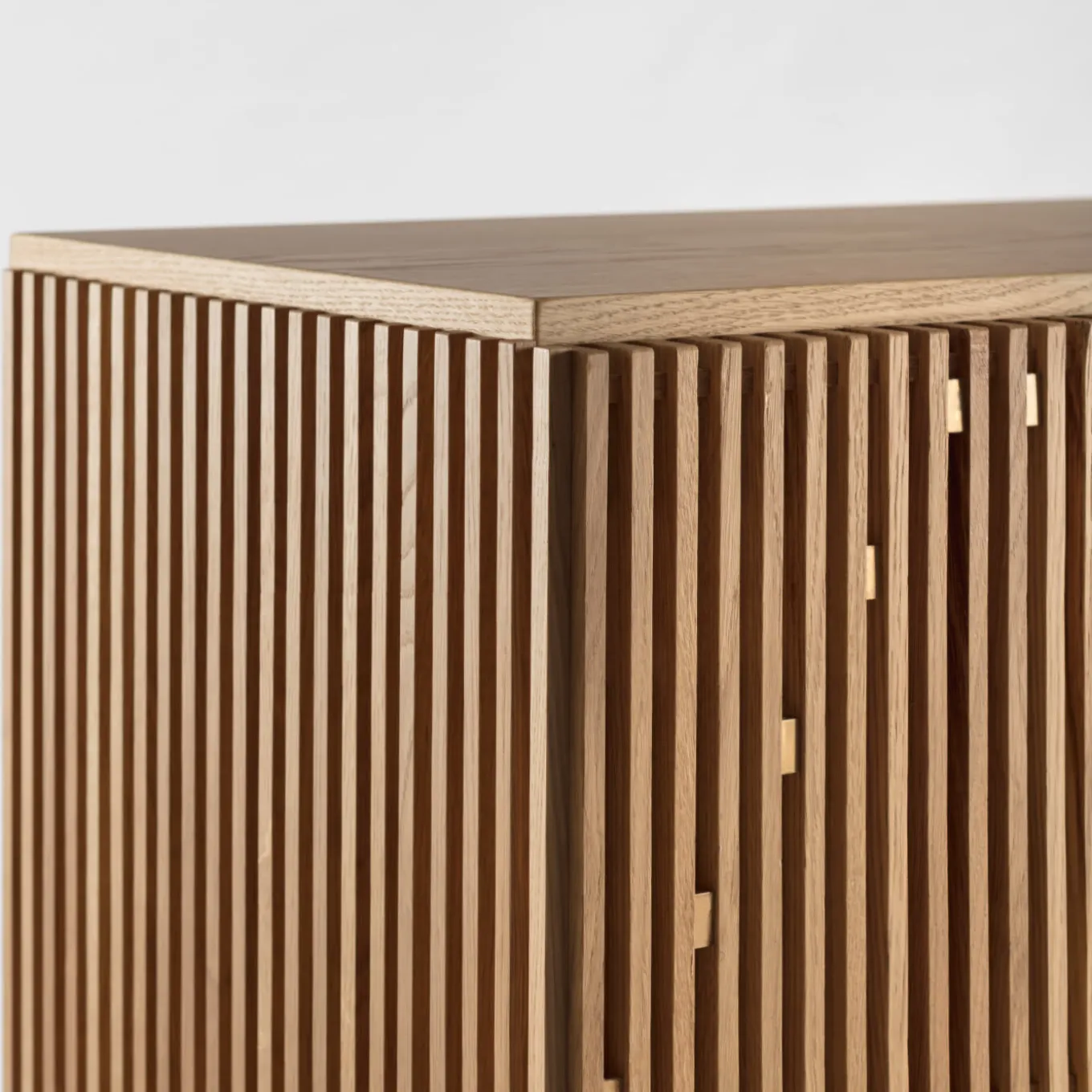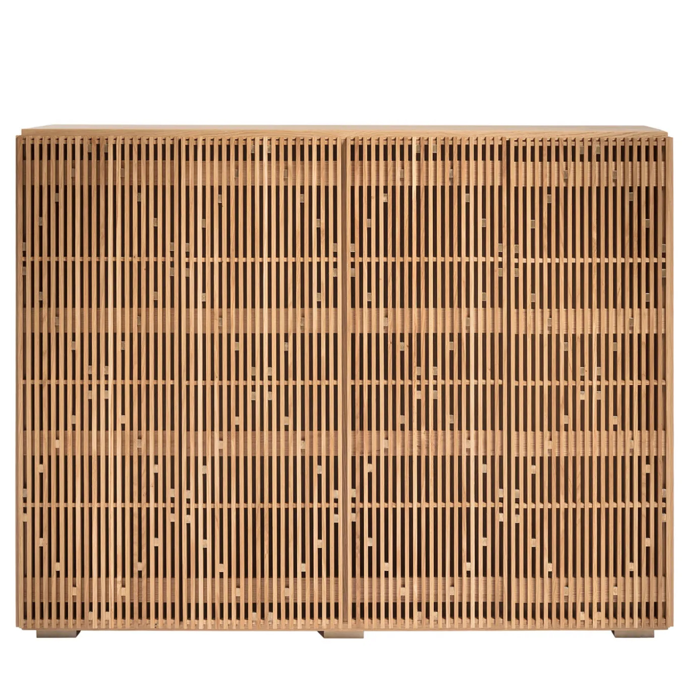 This exclusive cabinet will add warmth to light-toned decors, offering an interesting combination of precious wood and luminous metal details. Its streamlined blockboard structure veneered in durmast is complemented by doors in solid durmast featuring the addition of brass squares to create the rhomboidal motif distinguishing the Milione design. The inner storage unit is organized in two 2cm-thick shelves in extra-clear, tempered glass. Please check the other variants with the Concierge.