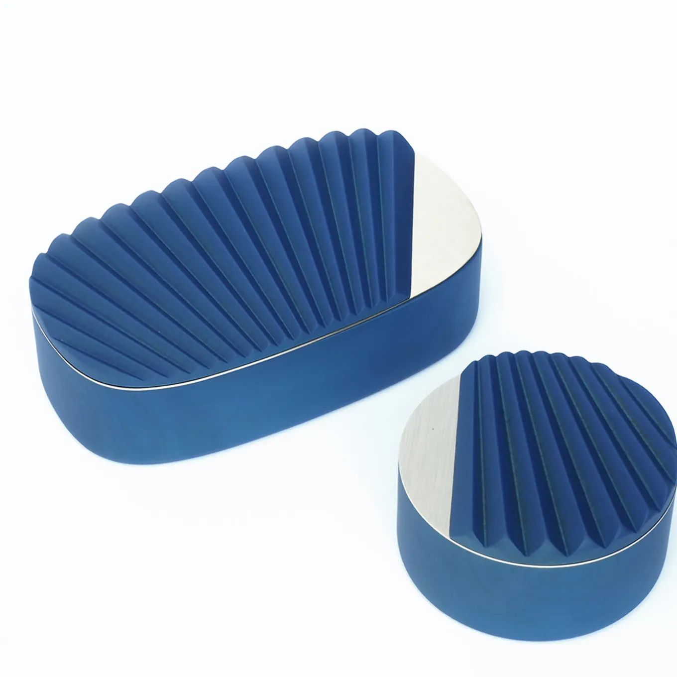 Featuring a lid inspired by the pleating of oriental fans, the box is part of a project including hand mirrors and larger jewelry boxes. Handcrafted in cherry wood in Italy’s Veneto region, the box comes with a small mirror and is complete with special magnets to conceal your best pieces. The box measures 10 centimeters in diameter.