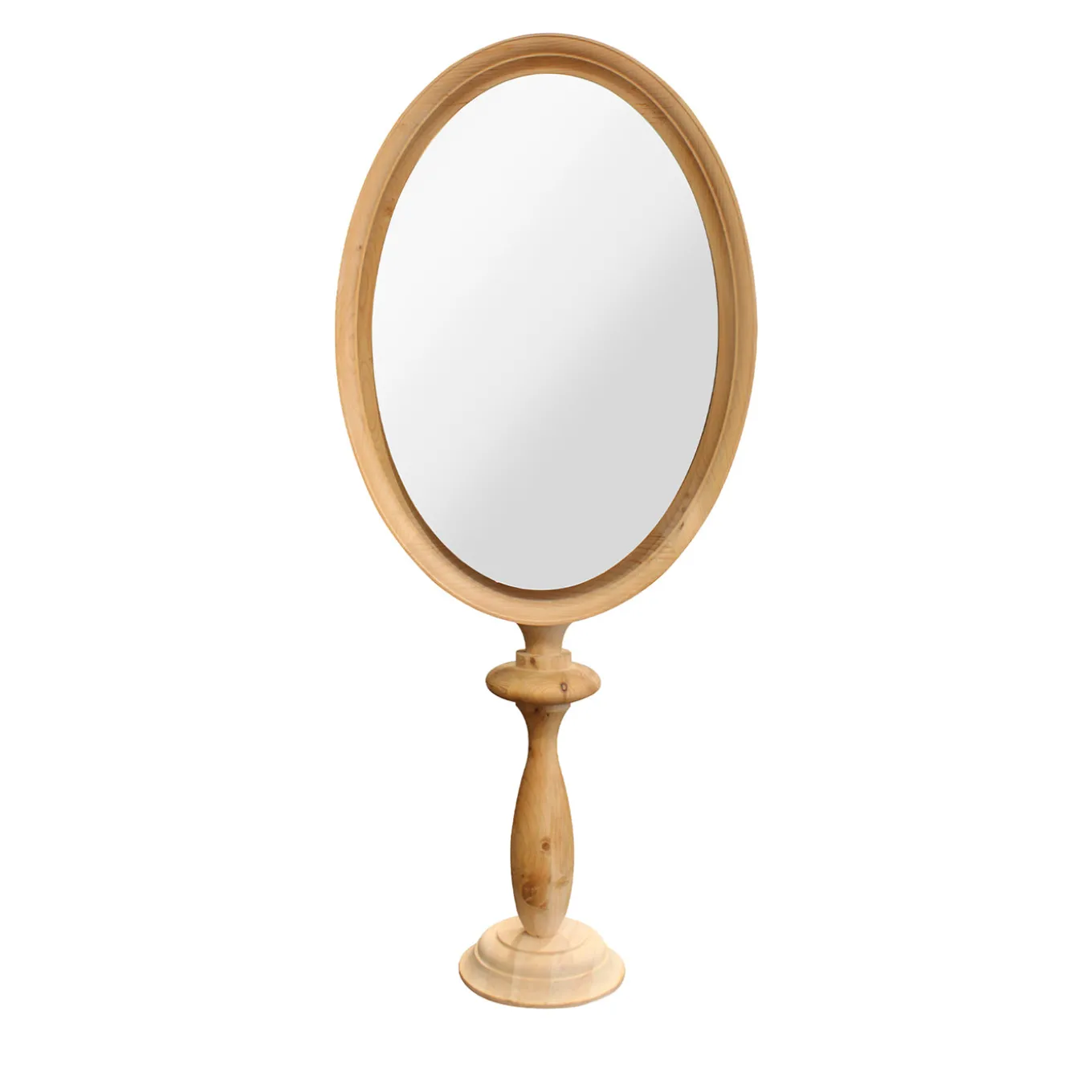 The Mirror Mirror floor mirror features a distinctive oval shape with a handle-inspired design elevated on a turned pedestal base. Crafted from solid cedar wood, it incorporates integrated led lighting to enhance visibility and create a warm ambiance. This piece, designed by Anton Kobrinetz, brings a unique blend of traditional mirror aesthetics and modern lighting technology, making it both a functional and decorative addition for interior spaces.