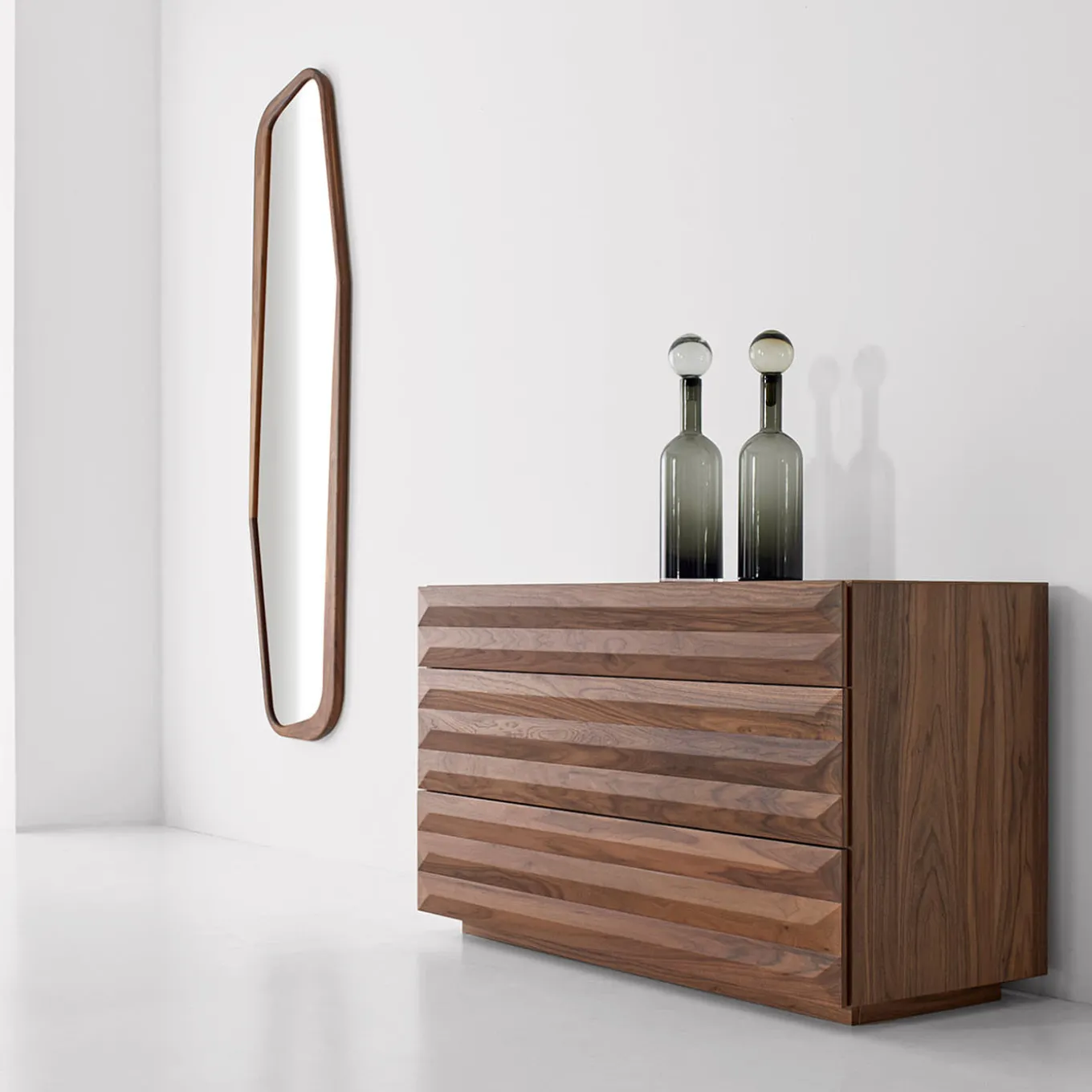 Modi chest of drawers with 6 drawers entirely made in Canaletto walnut. The drawers are also made internally in Canaletto walnut and slide on cushioned guides.