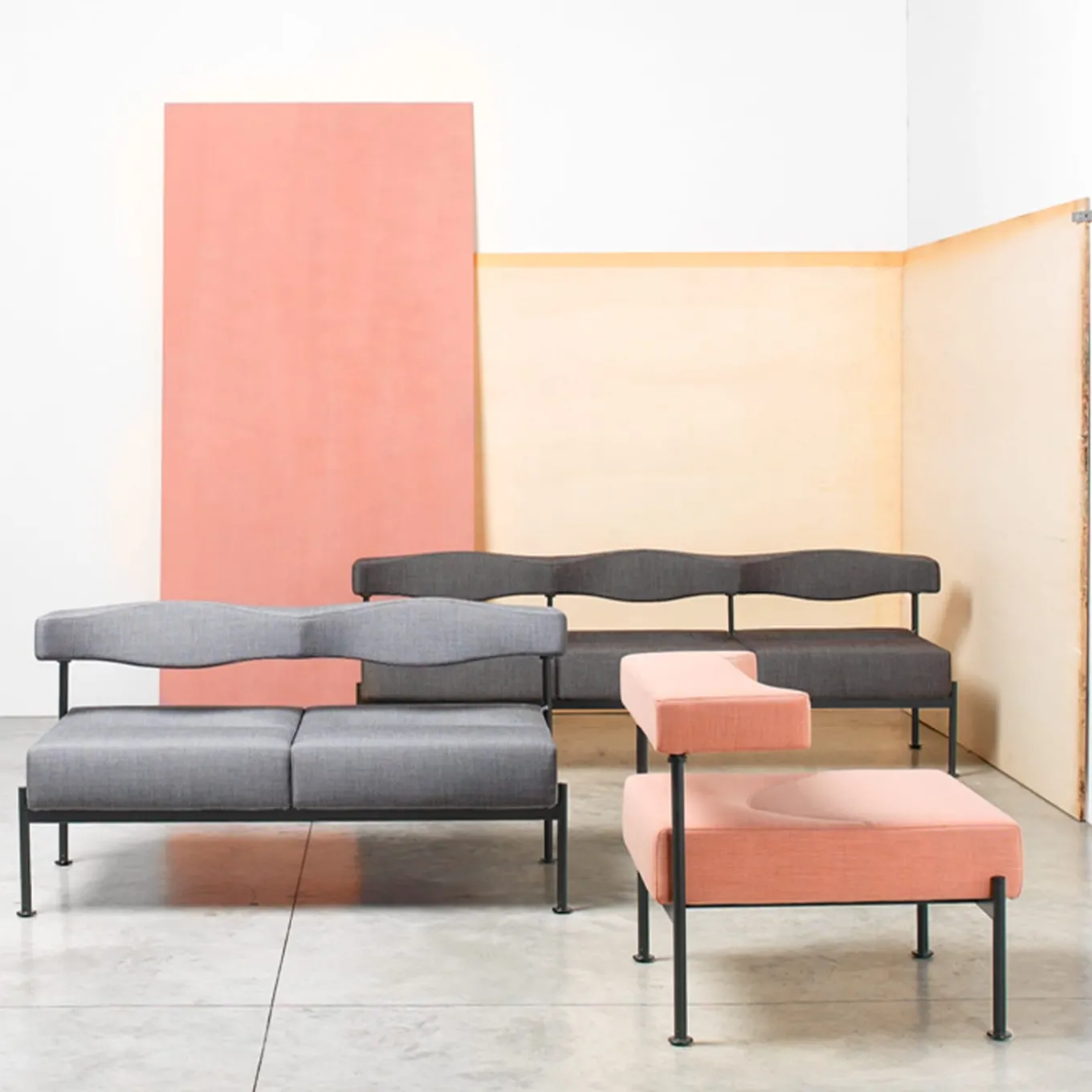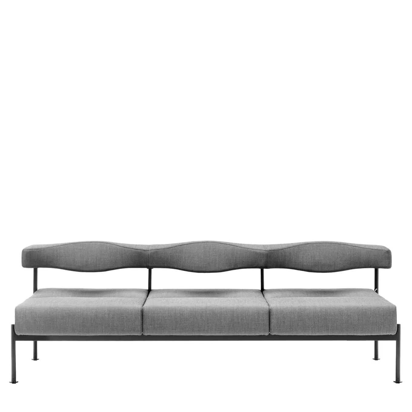 This upholstered three seater sofa is characterized by a painted 4-legged steel frame in matte black, to guarantee elegance and functionality in every living room.