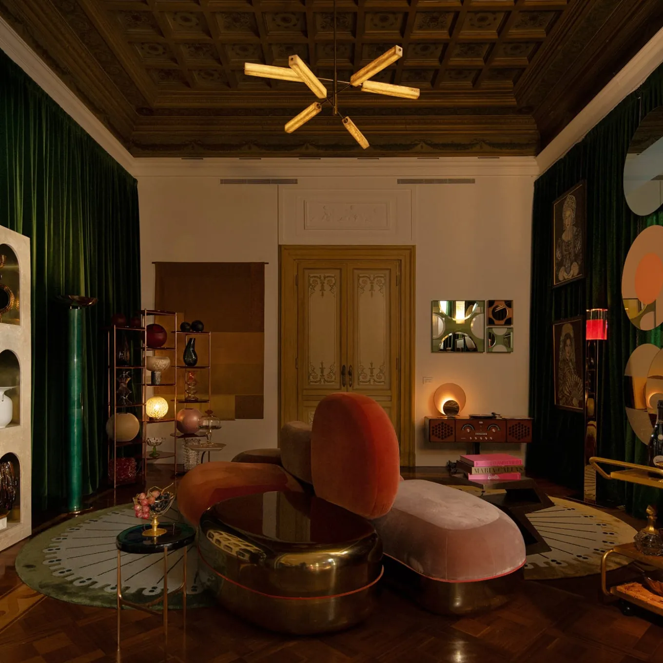 The simple elegance of a linear glossy brass frame meets in this chandelier the spontaneous charm of precious and unrepeatable parallelepipeds of fine onyx quarried in the East. The shades can be rotated to adjust the light to taste or decor needs while the stone blocks allow for an even warmer glow that enhances their natural traceries. Equipped with a non-flickering dimmable driver. Please refer to the Concierge for further information and customizations.