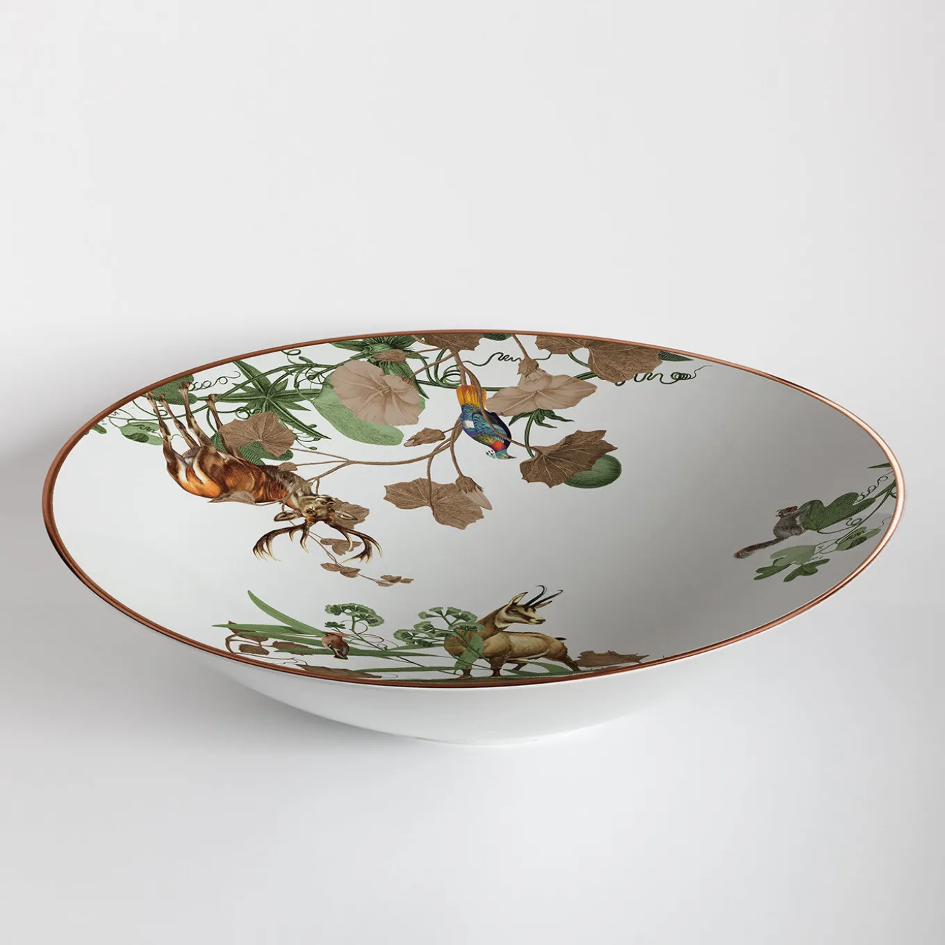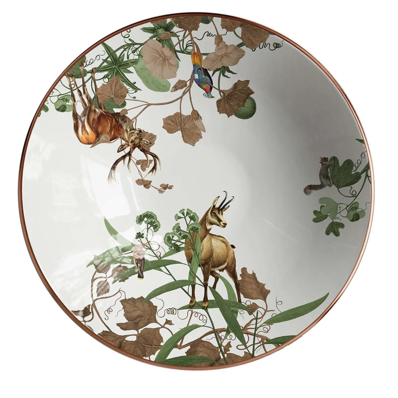 The Mont Blanc Bowl provides the perfect backdrop to serve wild game dishes to the guests. Its design features deers and their majestic antlers, framed by elegant vines with little birds sitting in them.