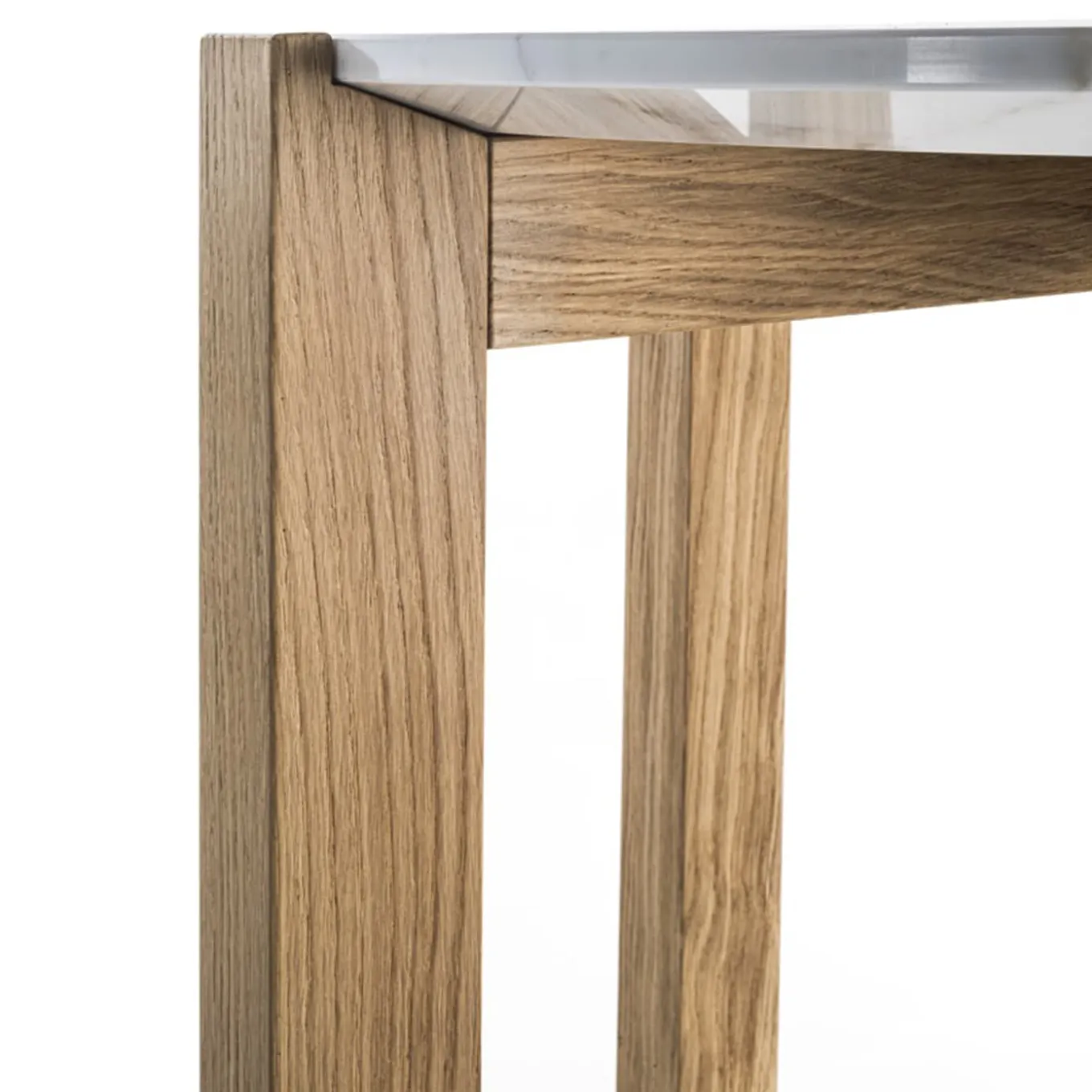 Essentiality meets luxury in this stunning round side table fashioned of solid wood and prized white marble. The circular marble top, with its intricate traceries, rests on four rigorously-sculpted wooden legs by means of a discreet recess system. Ideally complementing contemporary decors that will enhance the legs’ natural grain.