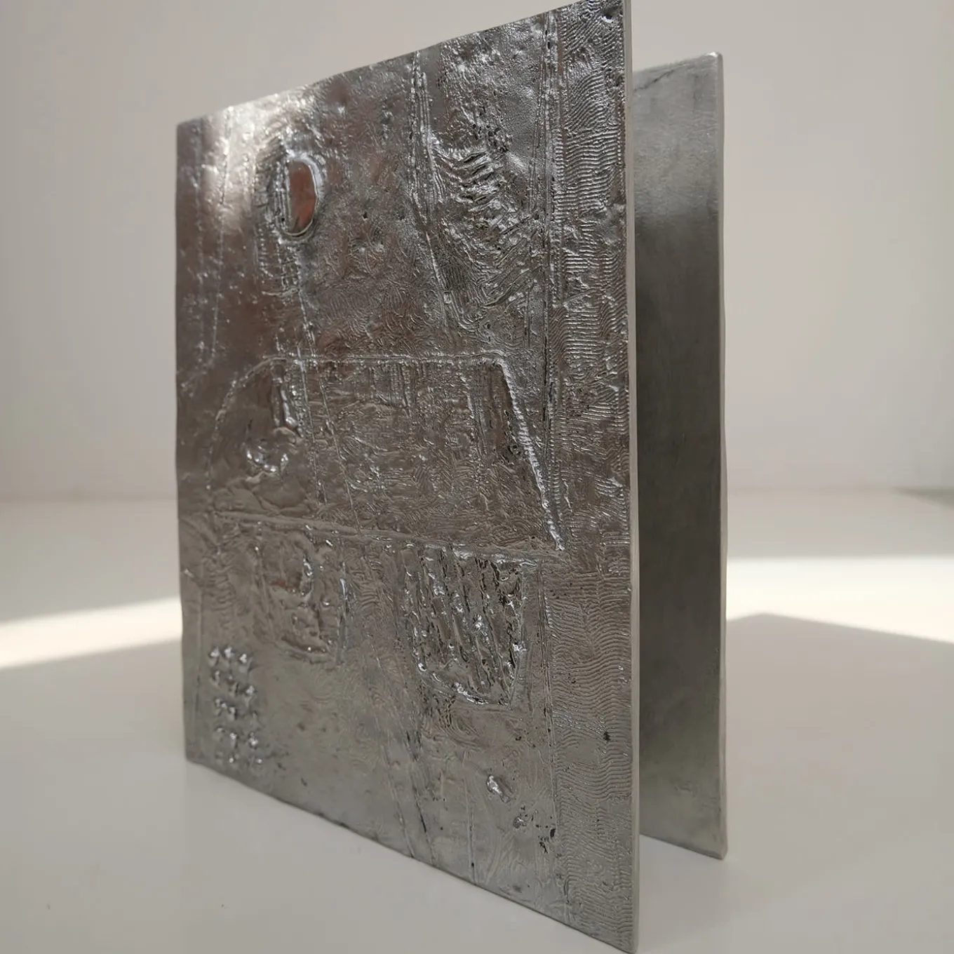 Forged in cast bronze, this artwork reveals unpredictable lunar architectures with distinct patterns on each side. Customizable for uniform patterns. Wanderart metal-cast artworks are all hand made, therefore dimensions and weight may vary.