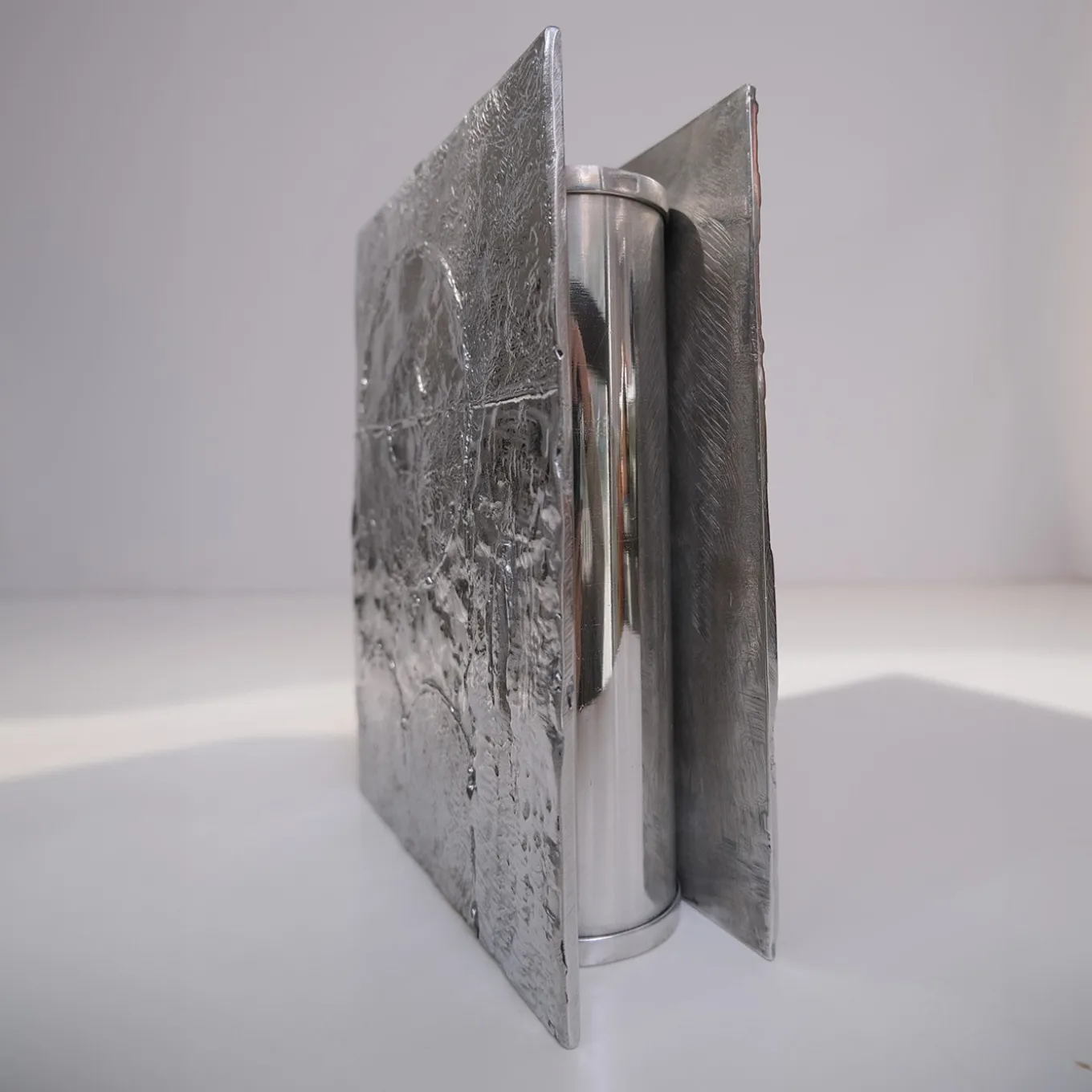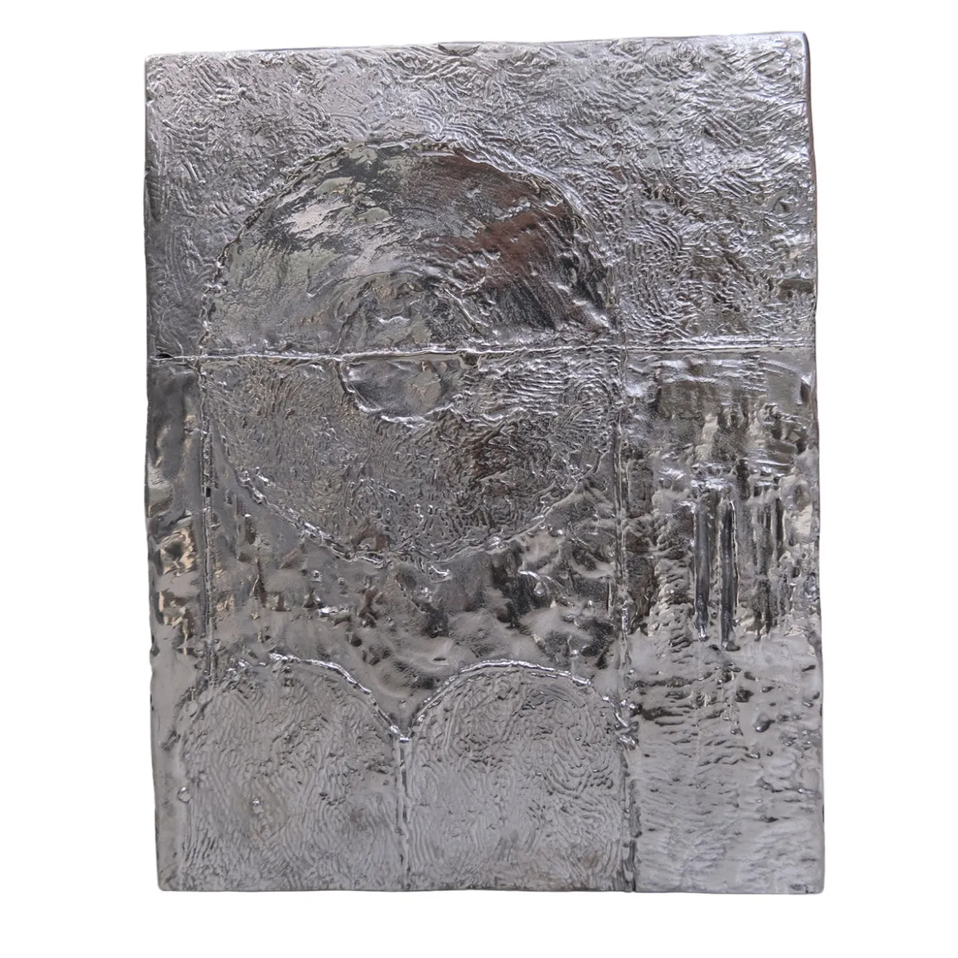 Forged in cast bronze, this artwork reveals unpredictable lunar architectures with distinct patterns on each side. Customizable for uniform patterns. Wanderart metal-cast artworks are all hand made, therefore dimensions and weight may vary.