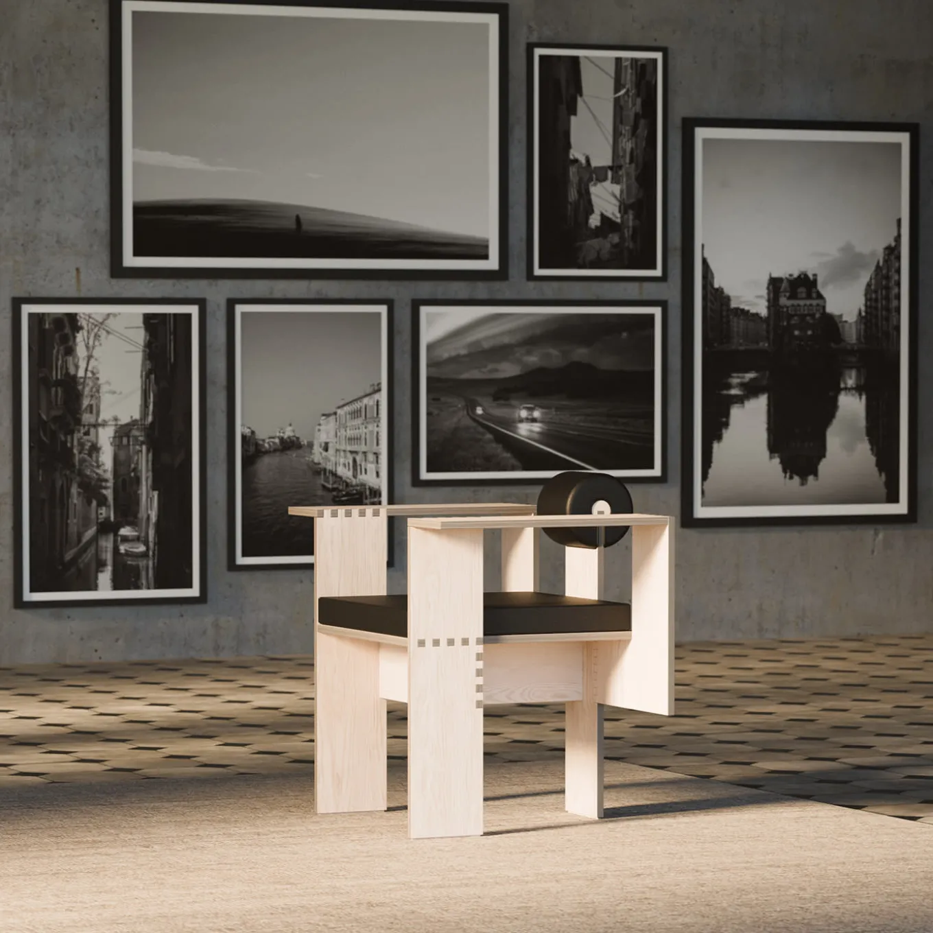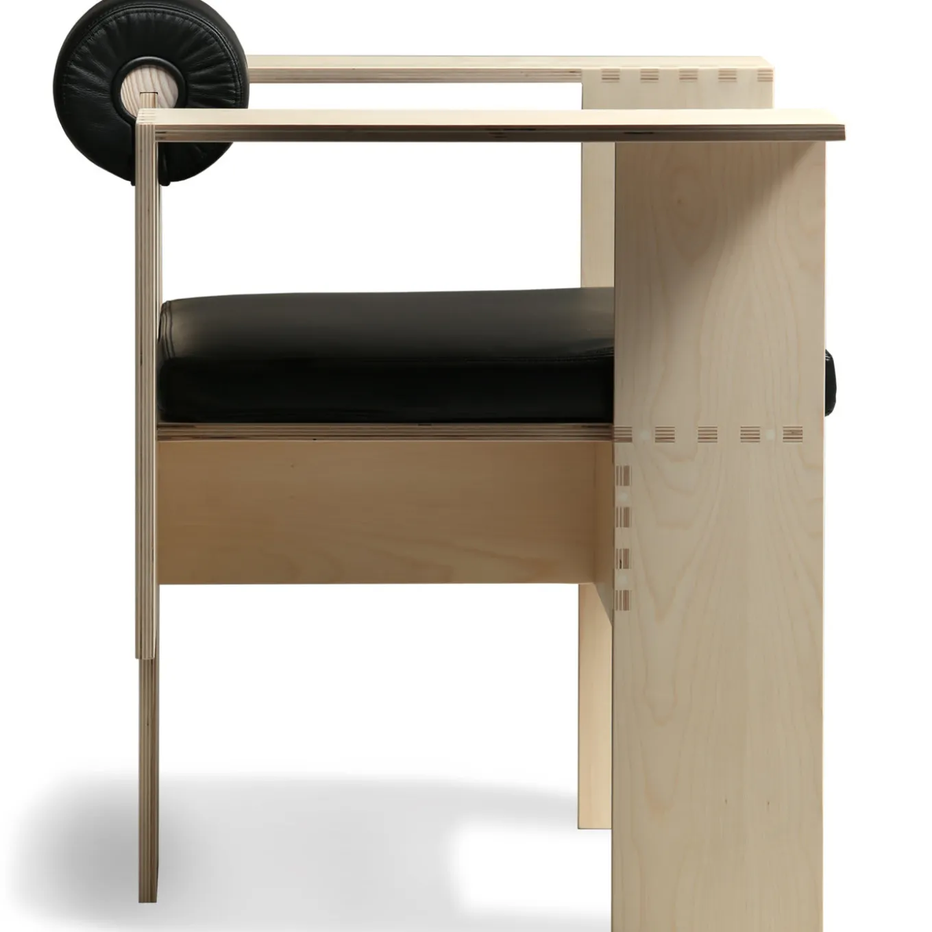 Designed by Mario Botta, this exquisite chair is a functional sculpture and will make an arresting effect in any room it is placed. The geometric shapes that make its contemporary silhouette are crafted in pieces assembled with joints in birch plywood veneered in maple. The large rectangular seat and the semi-spherical small back cushion can be removed and are available in a variety of fabric upholstery of different colors.