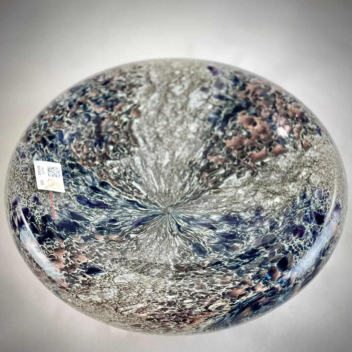 Created with a mixture of powdered colors, including the famous aventurine, on a base of ivory glass with applied, hot, silver leaf that oxidizes on contact, the glassy mass is skillfully worked by the master Matteo Tagliapietra creating on the surface of the real designs and swirls from which the name of the collection derives. Unique and exclusive objects resulting from years of experimentation that innovate the great tradition of Murano glass.