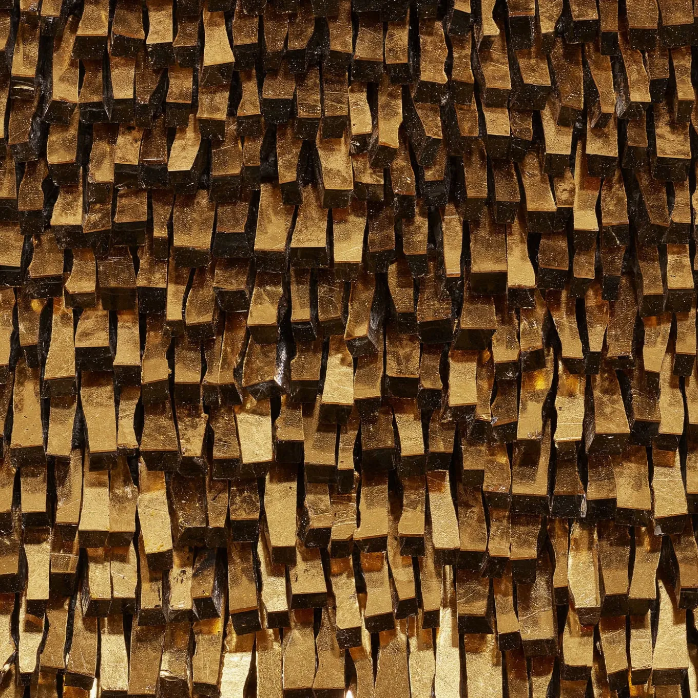 Stunning decorative piece featuring glass paste, gold leaf, colored oxides, and mortar, mounted on a multilayer wooden panel with an iron frame. The gradient effect moves from deep, earthy tones to radiant golden hues, creating a dramatic and luminous composition. This piece is a harmonious blend of timeless craftsmanship and modern elegance, perfect for enhancing any sophisticated interior.