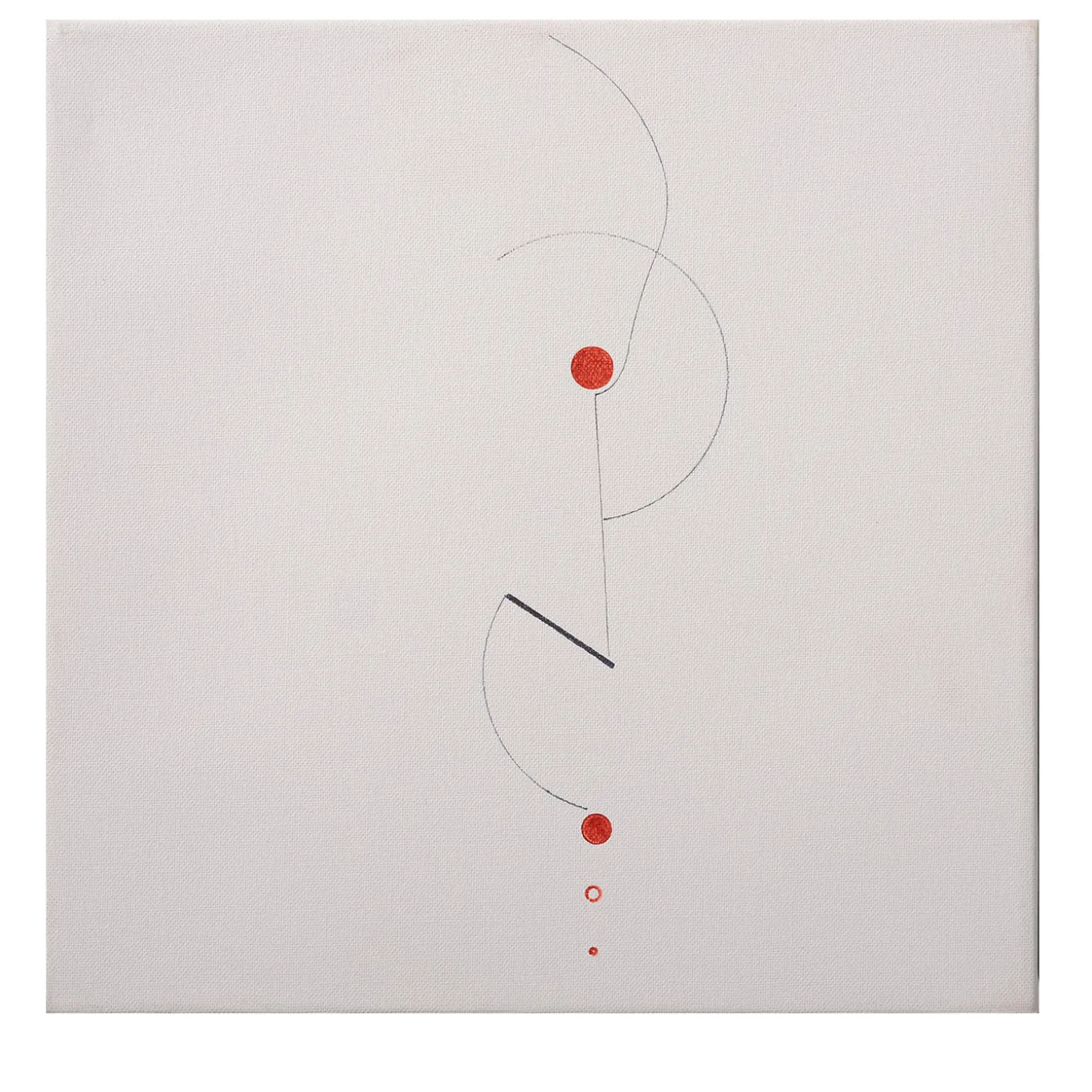 Made using a mixed media technique on a white canvas, this gorgeous artwork by artist Maurizia Carantani is an abstract expression of movement. A one-off piece from the exclusive 2015 collection of 30 oeuvres named “15×15”, it showcases a clean and captivating array of thin geometric lines, enriched with bold red dots.