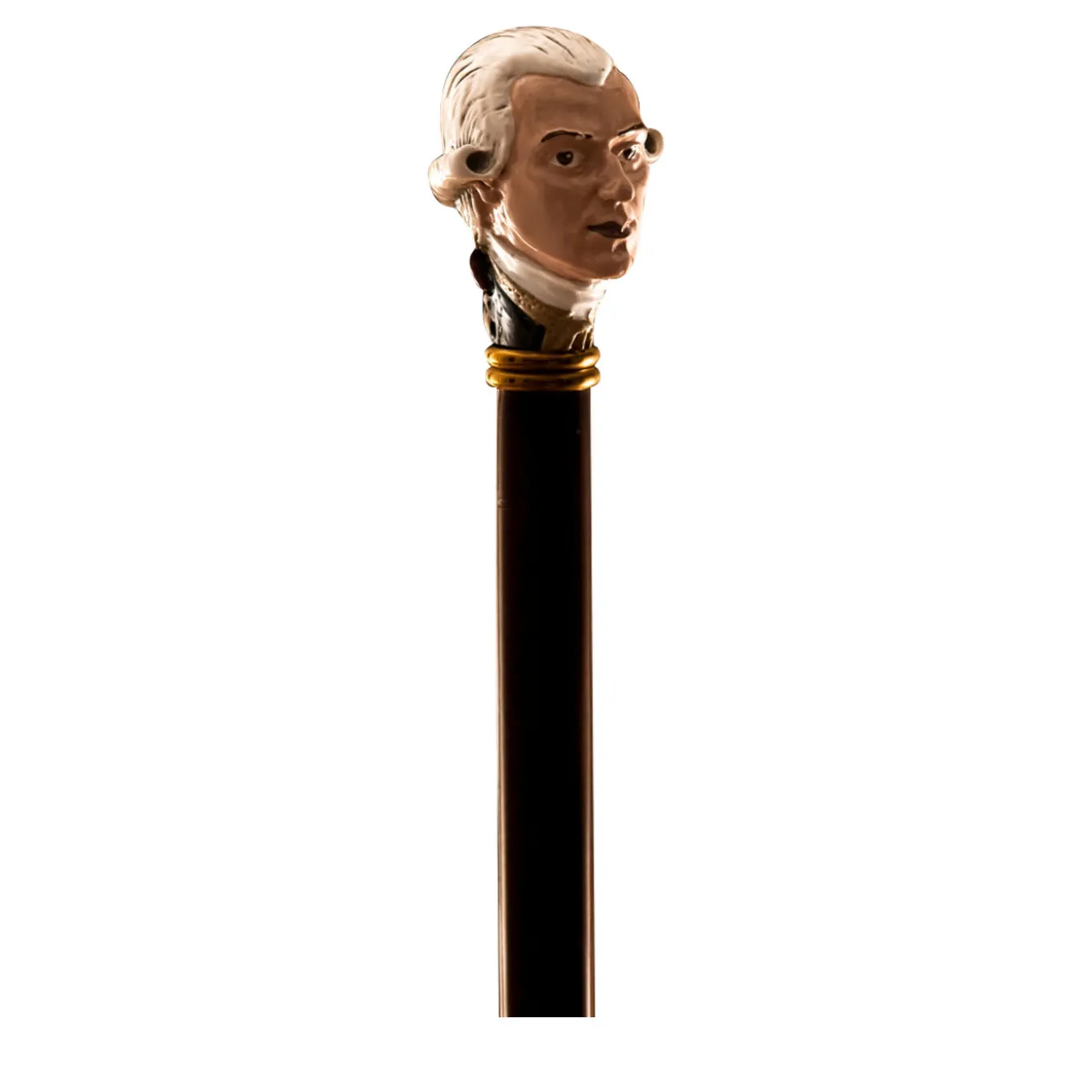 Characterized by an elegant and classic design, this stick features a metal handle richly decorated with elegant patterns embossed on the surface. The conical shaft of this sophisticated accessory is crafted in gloss black beech wood and has a silver-plated brass tip with protective rubber end. This is a collectible item, not to be used for walking.