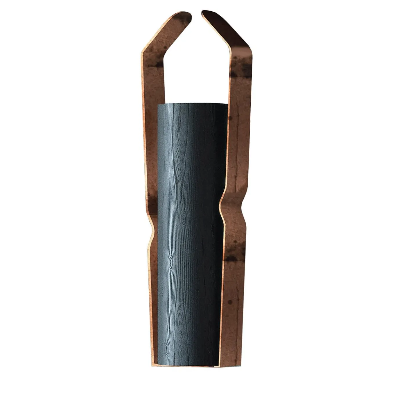Inspired by the past, the Mummoli Collection evokes the profile of original elements as a memory of time and regenerates them through processes of deconstruction and functionalization. The candle holder, an artifact of high craftsmanship made of cedar wood, recovered and charred using the Japanese Shou Sugi Ba technique and etched iron, soars over the surfaces that house it, giving it a warm and authentic touch.