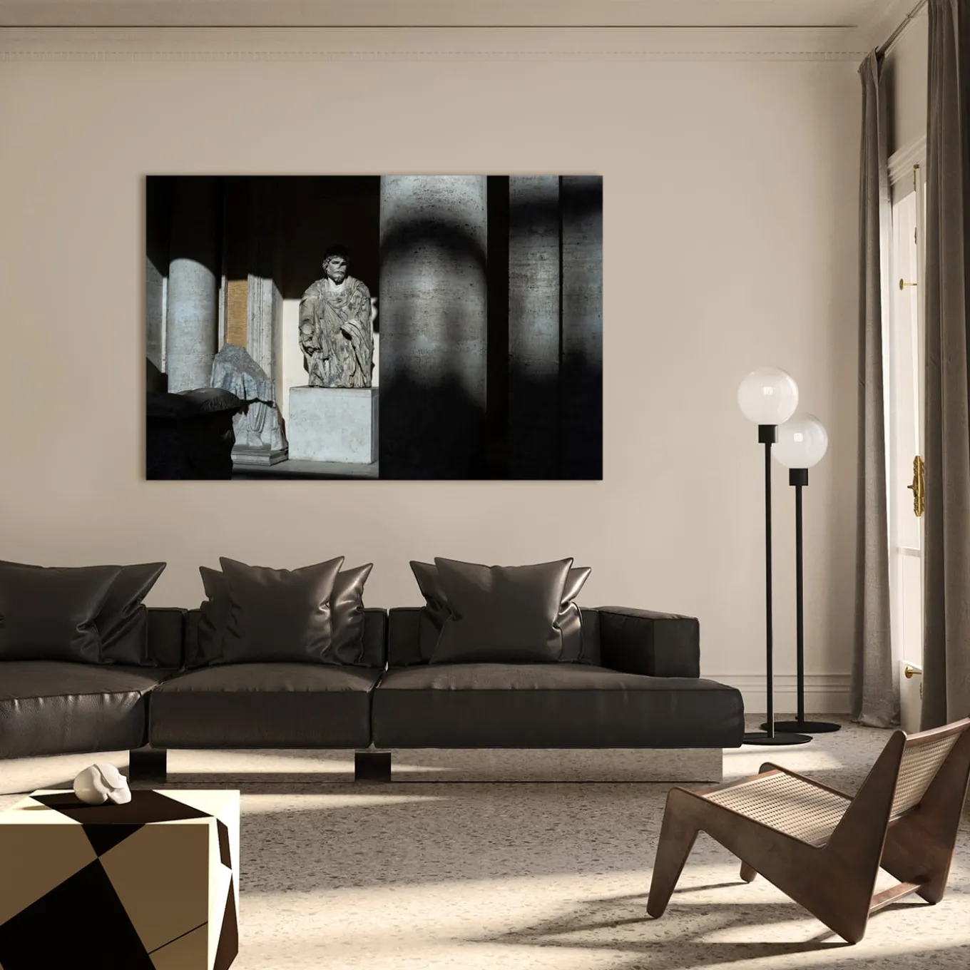 A stupendous game of lights and shadows enhances the majestic classic allure of this gorgeous photograph by Massimo Siragusa. Taken in the Musei Capitolini of Rome, it belongs to the Museum series. It is printed on cotton paper by Hahnemuhle Photo Rag. It is a limited edition of 7. It comes with an authenticity certificate and can be customized in format, please contact the Concierge for further information. The frame is not included.