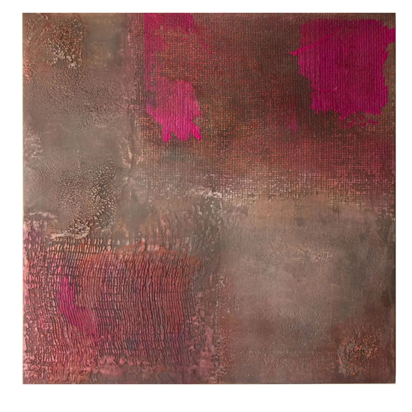 Micro-cement, pigments, and Japanese paper are all elements artist Alice Corbetta combines on a wooden panel to craft this mixed-media painting, artwork whose outstanding texture is inspired by molting. Enlivened by a daring use of color, the surface offers a vast vision of its detailing, which includes portions of a brand-new “skin” as well as fragments of its previous one. Delivered with a certificate of authenticity.