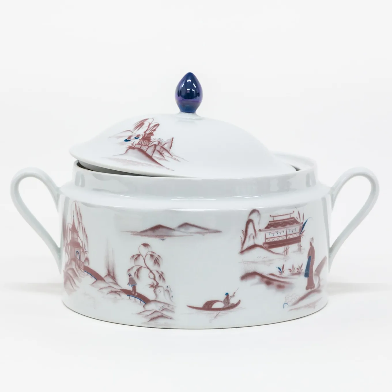 Evoking the serene simplicity of summer, this gorgeous soup bowl features a handmade painting of an idyllic Japanese landscape inspired by the traditional Imari imagery, distinguished for its three-color palette.