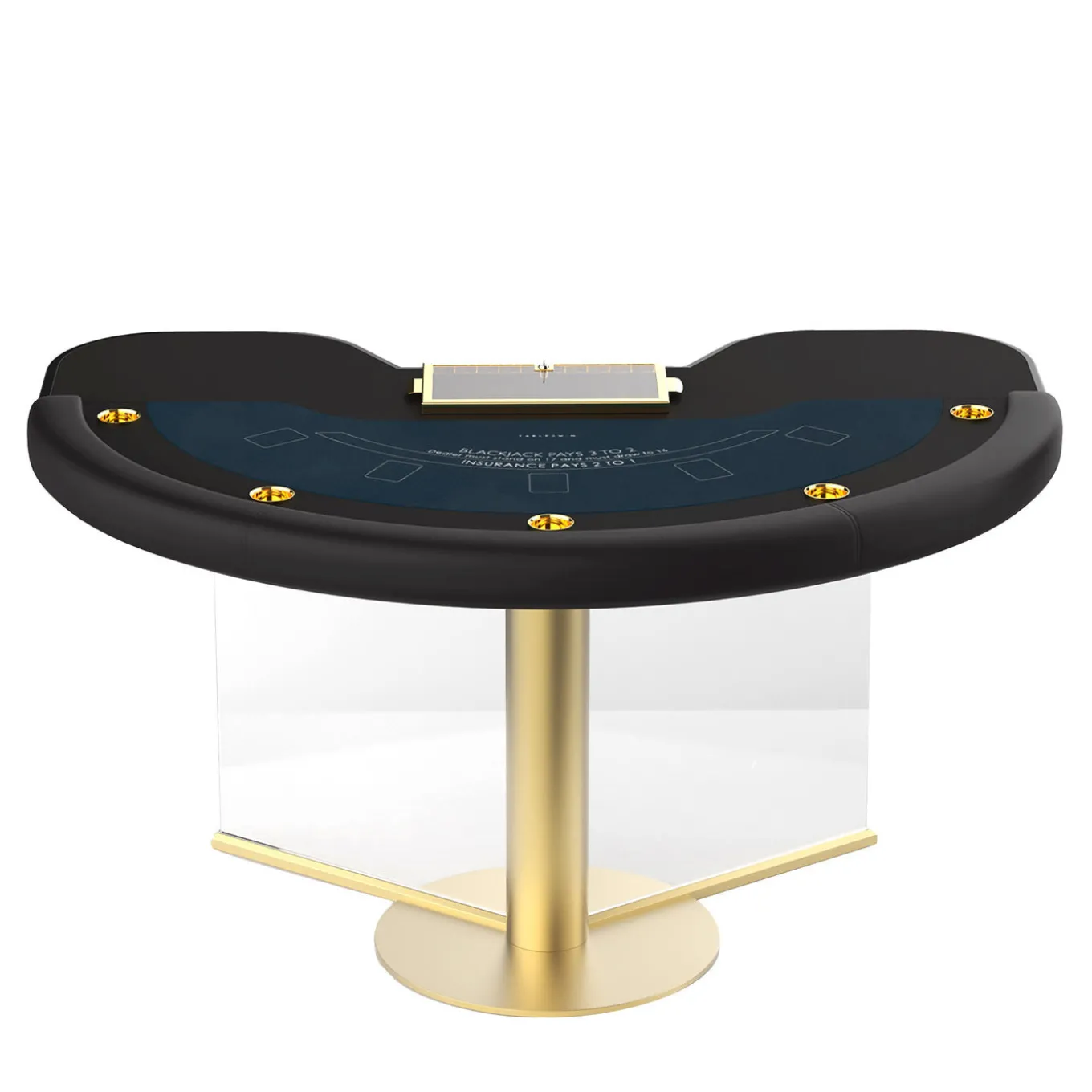 Designed to take on the dealer with the confidence of naturally superior players, the Tableswin Blackjack series adds the ace to any 10 point card. Designed by Marc Sadler. Fully customizable, pro quality microfiber felt, cards and ceramic chips make sure that Natural 21 offers exclusive signature style. Designed to enhance both the table’s luxury aesthetic and rigorously tested ergonomic features, soft padded leather arm rails and inset drink holders ensure superior comfort, hand after hand.