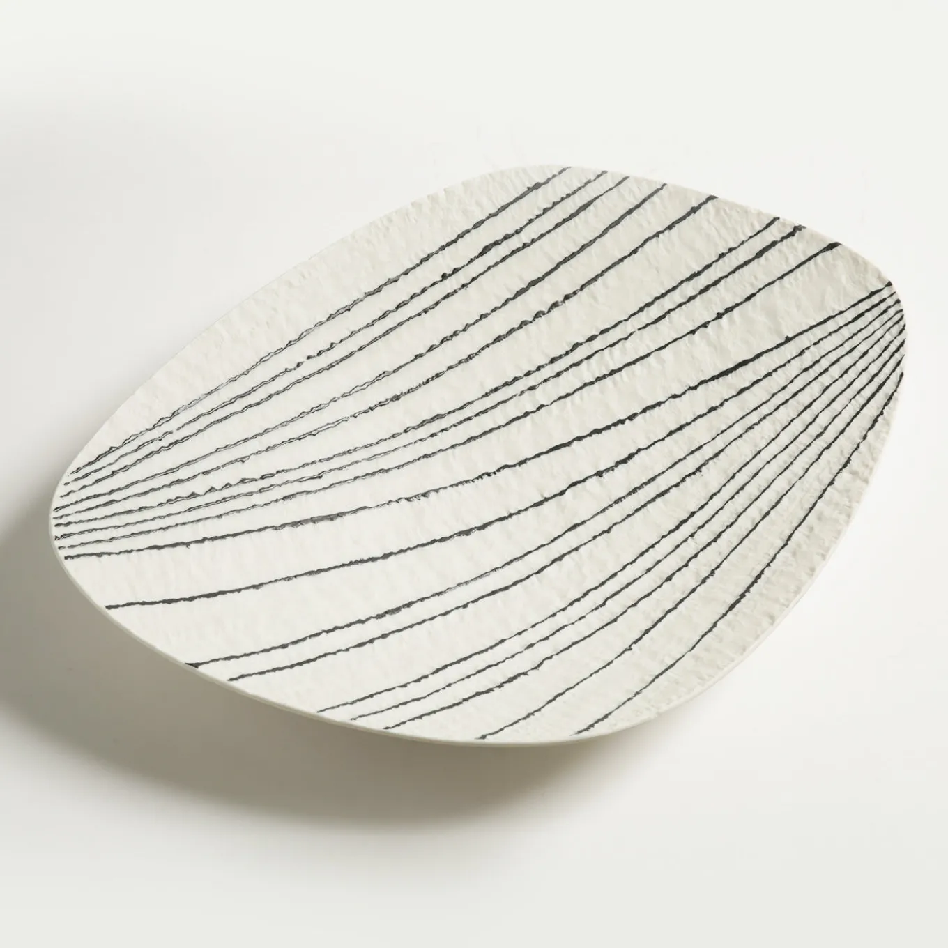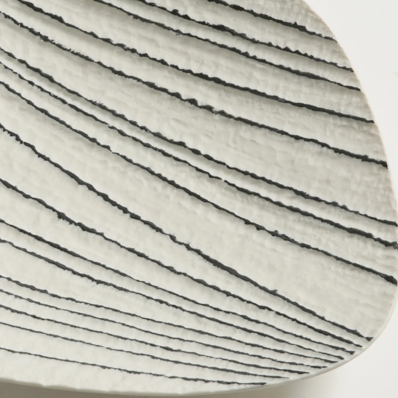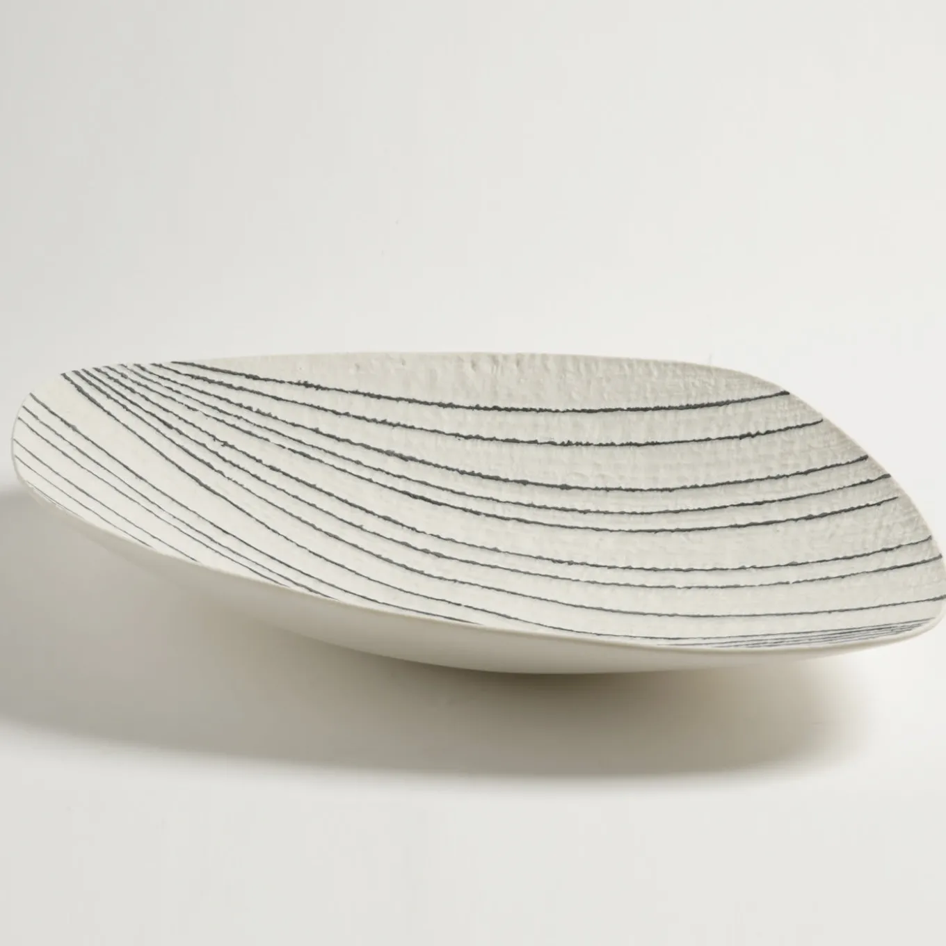 In this elegant plate, the timeless juxtaposition of black and white plays harmoniously with the lines and grooves that enrich its texture. A meticulously crafted mold and the use of unglazed porcelain, or “biscuit”, make this piece an exquisite objet d’art.