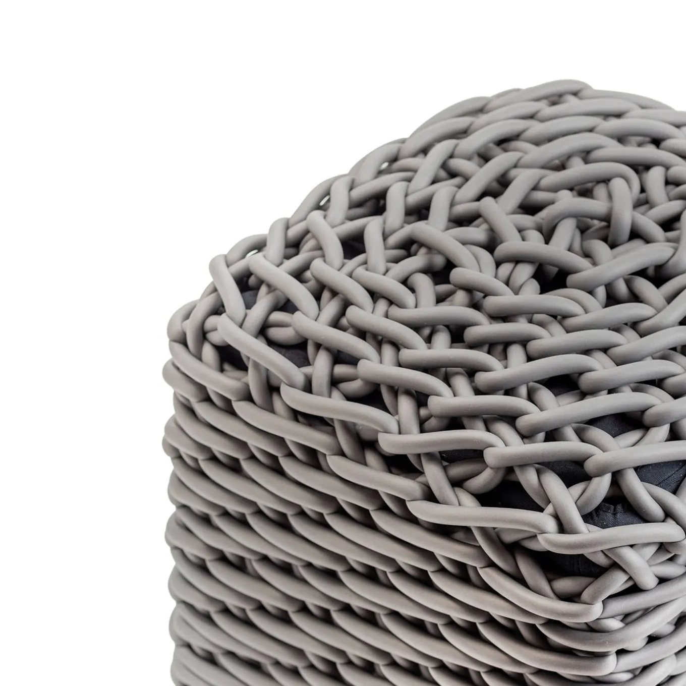 Easily style any home with the NEO pouf designed by Rosanna Contadini. Crafted with a metal frame, this square-based pouf is meticulously hand-knotted with gray neoprene wire. An elegant and eye-catching addition to any room in the house, this pouf is best paired with other elements from the same collection. This versatile accessory can be used as a chair, tabletop, and in a variety of different ways. Please contact the Concierge for more details.