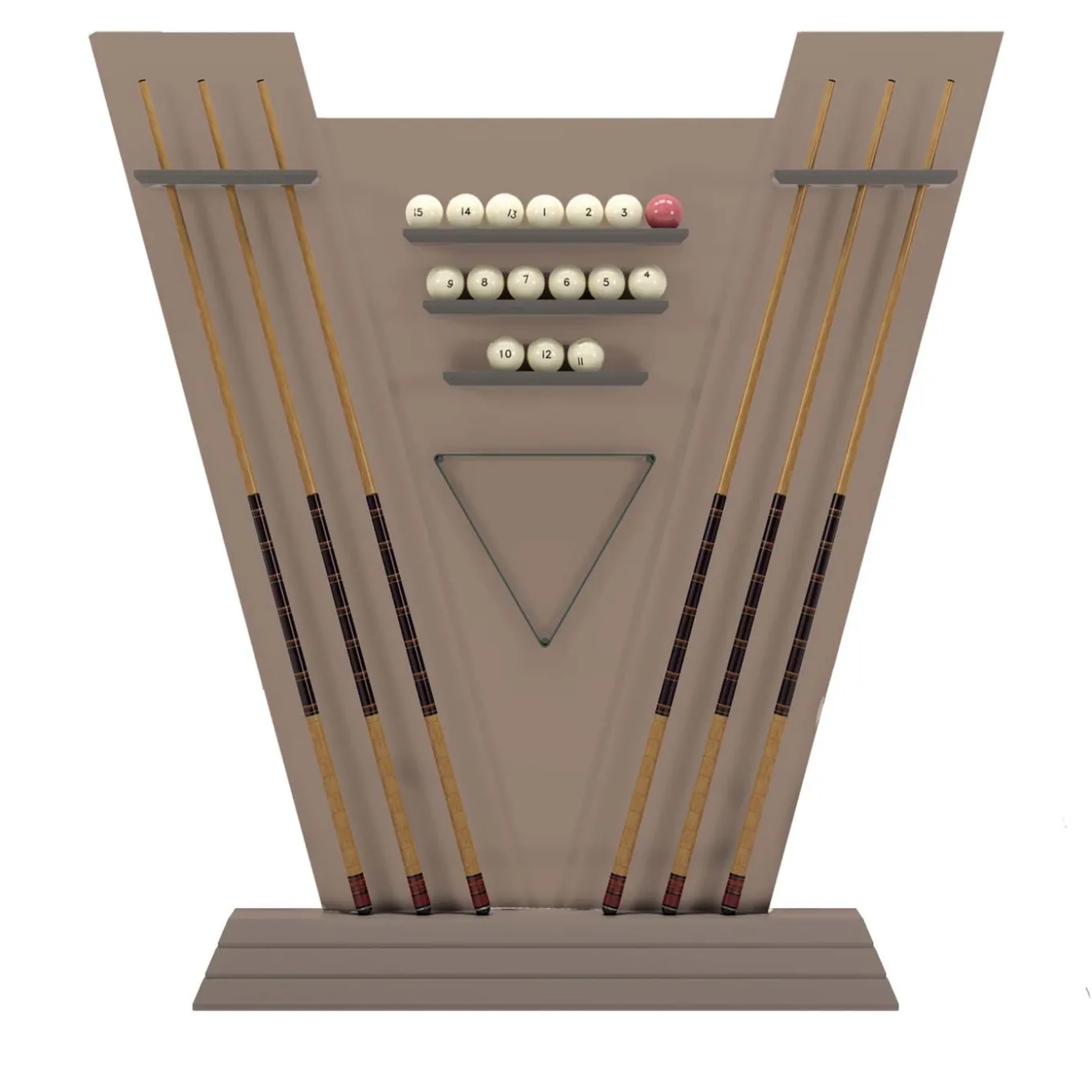 The NewDe cue rack in light brown comes from Pino Vismara’s New Desire Collection. Thanks to the rack’s dynamic geometric design, the piece brings fun to your space even when you’re not playing. The rack comes complete with a triangle and has space for six cues and shelves for balls. Structure lacquered in matt Light Brown. Cues and balls are not included.