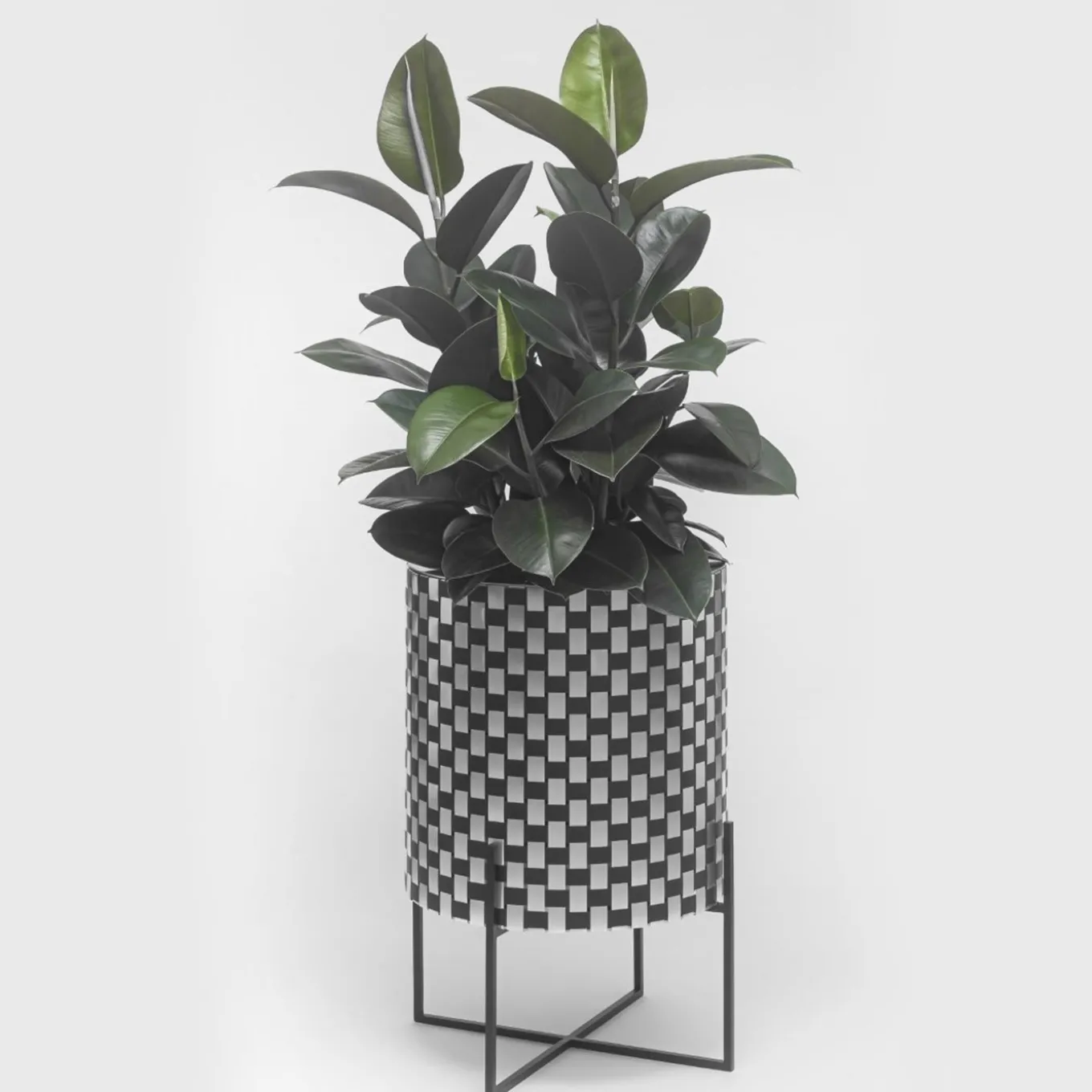 This sophisticated cachepot features an exclusive handwoven aluminum material, called Splot, created exclusively by Inthegarden Design Studio. The cachepot features a black painted iron crossed base – elevating the cylindrical vase holder approximately 10 cm off the ground – and a cylindrical vase holder with an internal steel structure and an optical, woven exterior fashioned using alternating black and natural aluminum foils. Available in three different sizes and finishes, please contact the Concierge for details.