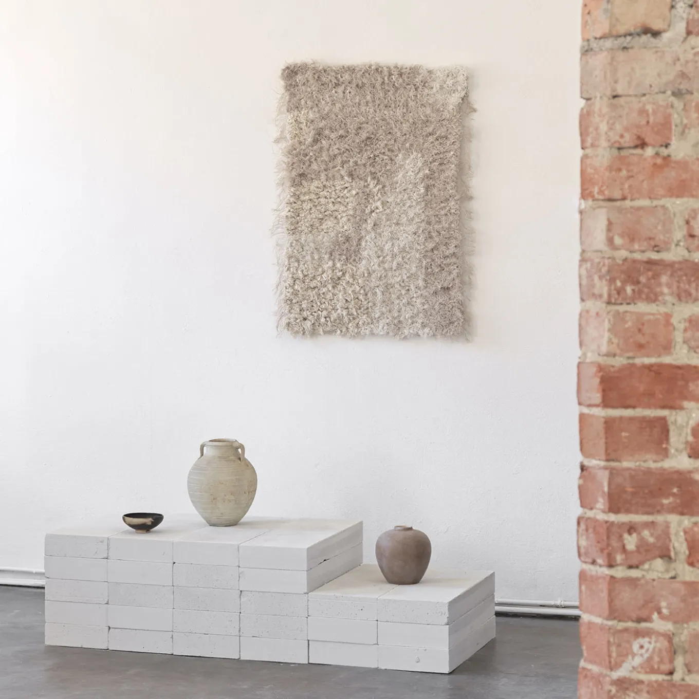 Bathed in soft neutral hues, this handwoven textile piece captivates with its delicate blend of light and texture. Crafted from intricately woven selvages, it radiates quiet sophistication, making it the perfect centerpiece for upscale apartments, refined restaurants, or elegant hotel lobbies. Presented at the 2024 Salone del Mobile, this luminous work elevates contemporary spaces with its graceful, timeless charm.