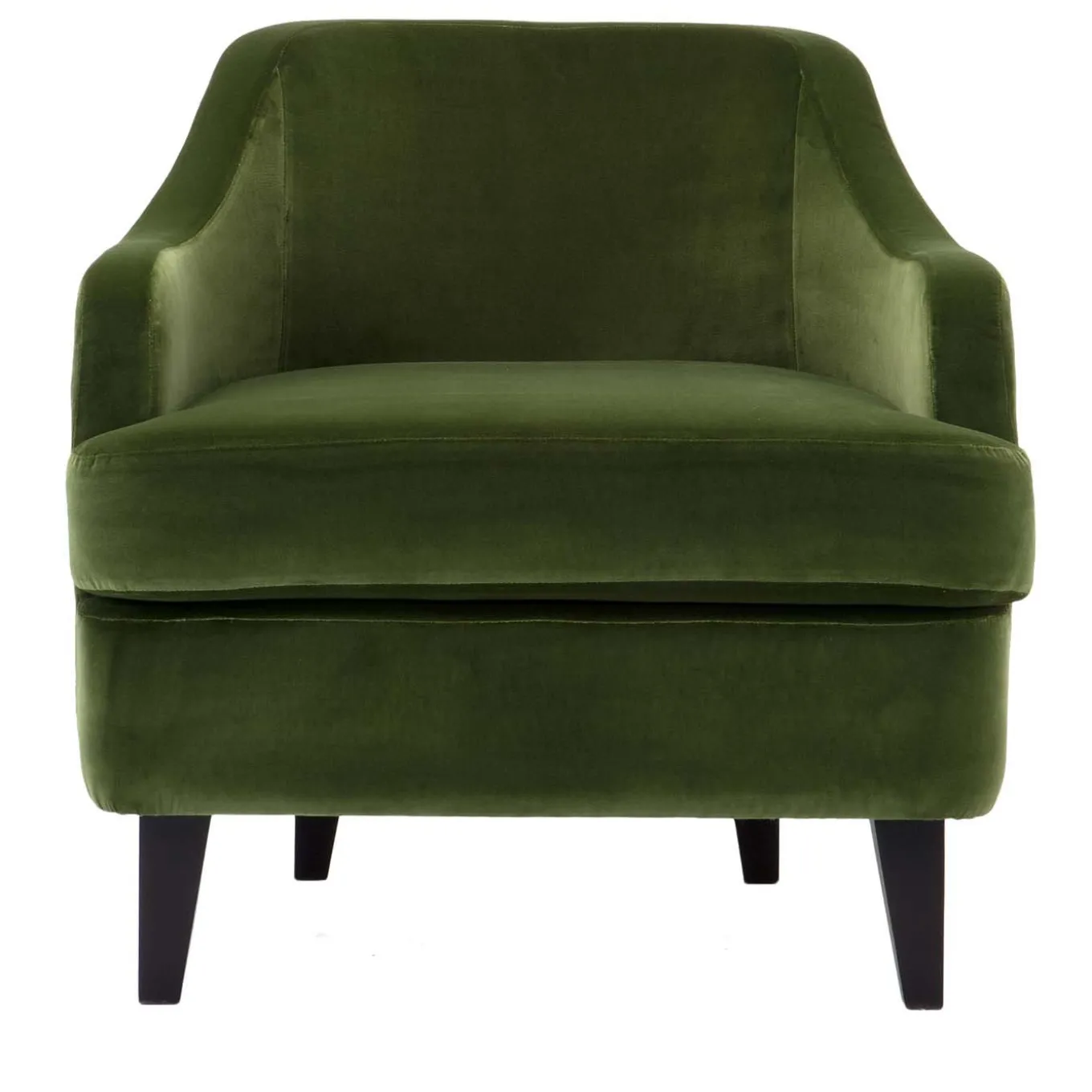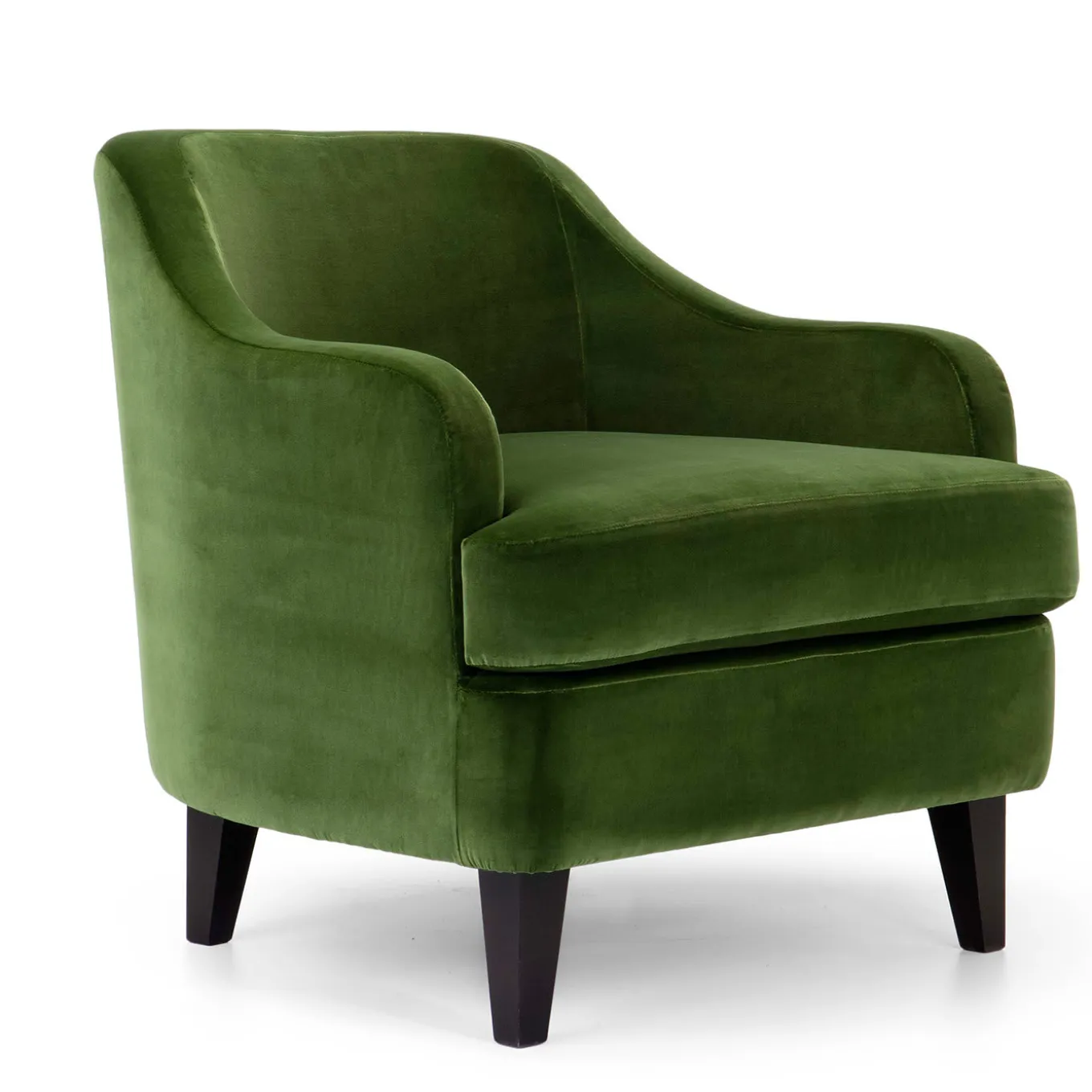 Modern functionality and classic elegance define this superb armchair whose contoured silhouette features gently rounded edges, outlining the large seat, medium backrest, and sloping armrests. Set on black solid wood legs, a sophisticated green Dacron upholstery covers the multi-density polyurethane padding that ensures comfort, while enhancing the slim silhouette.