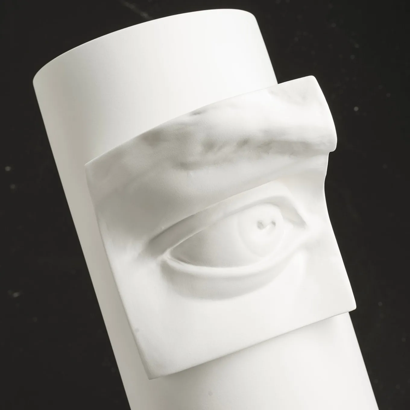 A sleek hollow cylinder with a reproduction of Michelangelo’s David’s eye protruding from the exterior defines the eccentric look of this decorative vase. It is handcrafted of fine ceramic and finished in an elegant matte-white enamel. Please explore the Artemest catalog for more David-related designs by VGnewtrend.