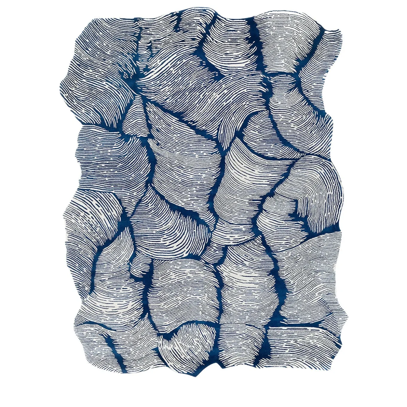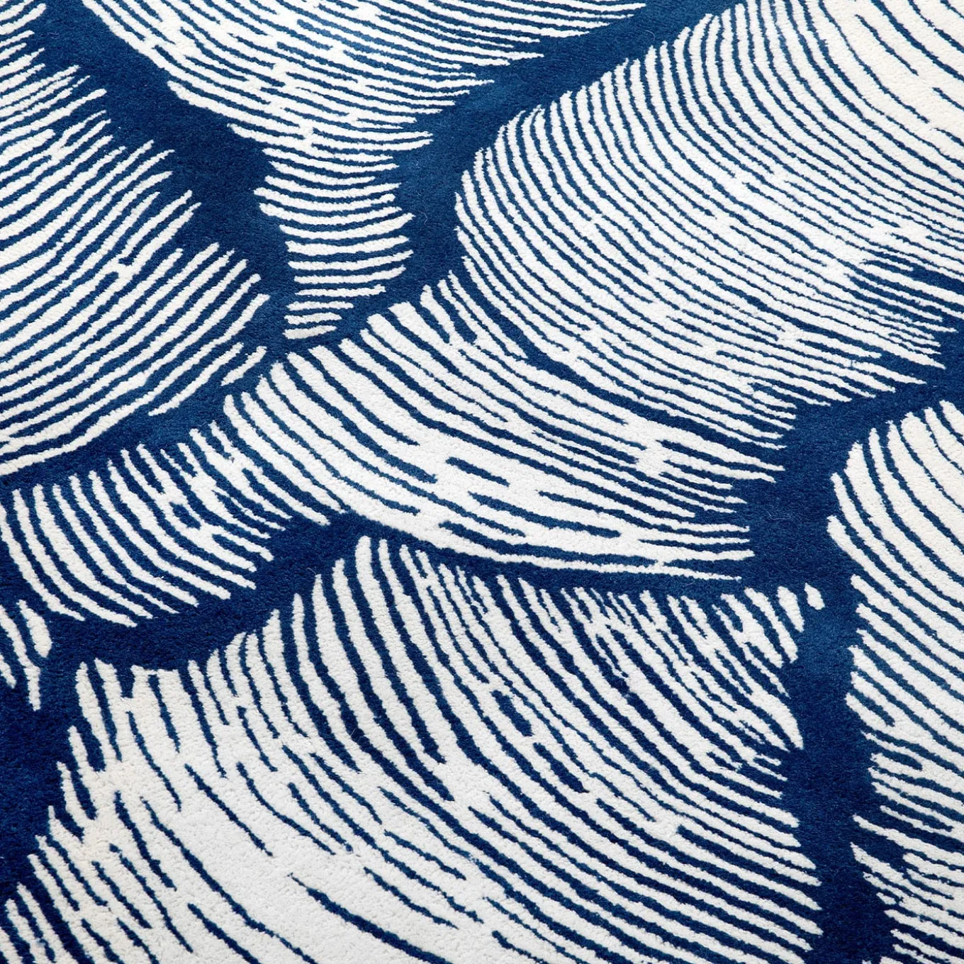 This Oceano blue wool rectangular rug features a dynamic design inspired by the fluid motion of ocean waves, creating hypnotic vortex patterns. The hand-tufted craftsmanship highlights intricate line work that evokes the primordial energy and vastness of the sea. Crafted in India, it embodies both artistic expression and enduring quality. Available in two formats and multiple dimensions, it offers a visually engaging centerpiece that enriches any interior space. Contact the Concierge for more information.