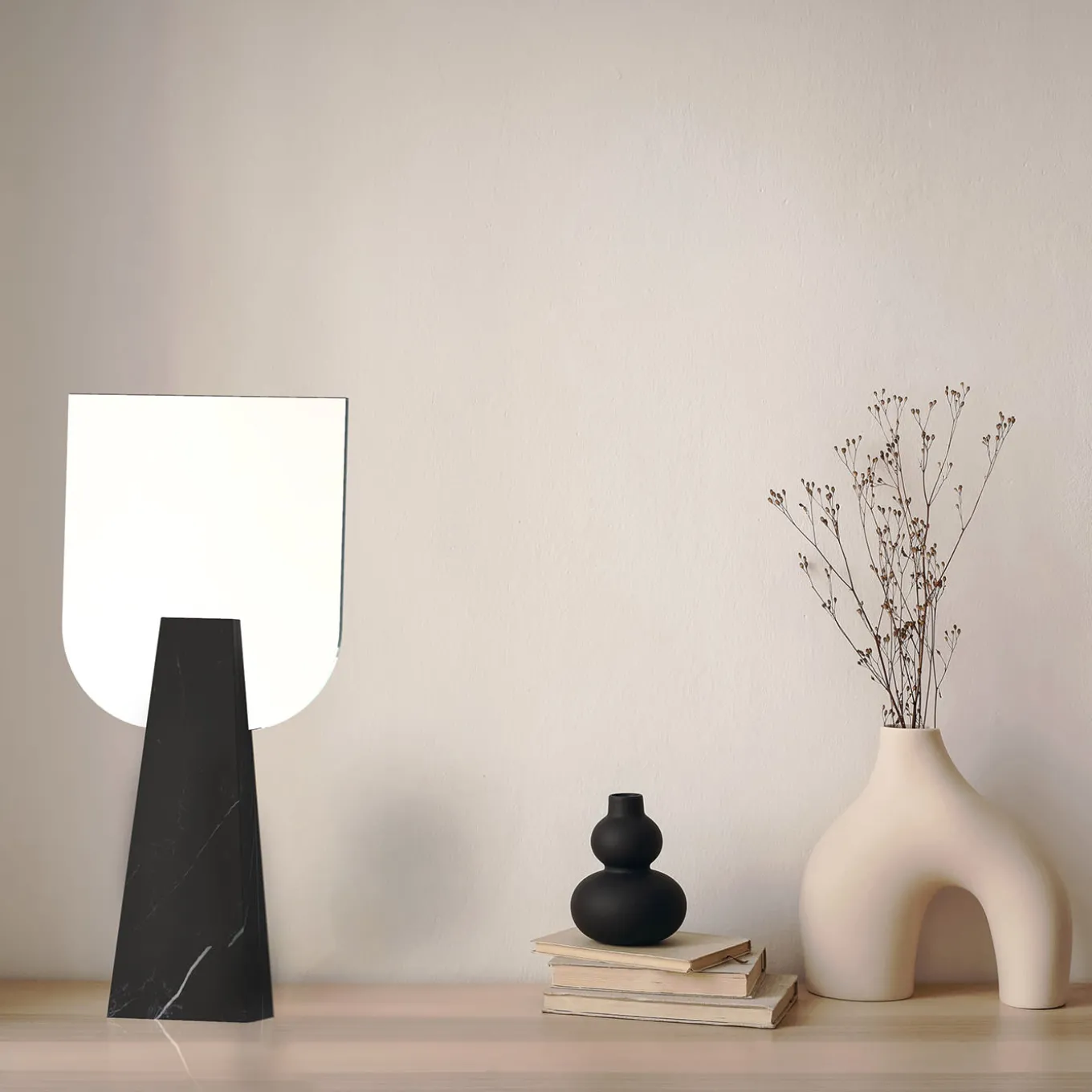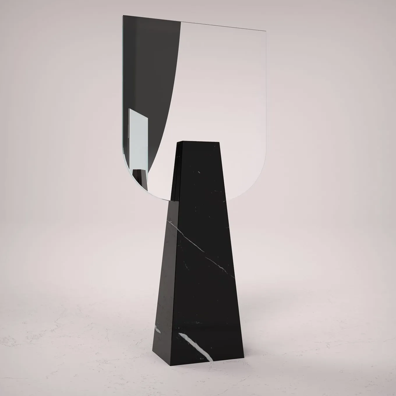 A sophisticated encounter between neoclassic and contemporary influences, this table mirror will make for a superb addition to vanity tables. The hand-shaped double-sided mirror is set into a rigorously sculpted and precious monobloc base fashioned of Black Marquina marble base, finally perfected by a smooth finish. Each piece is numbered and made to order.