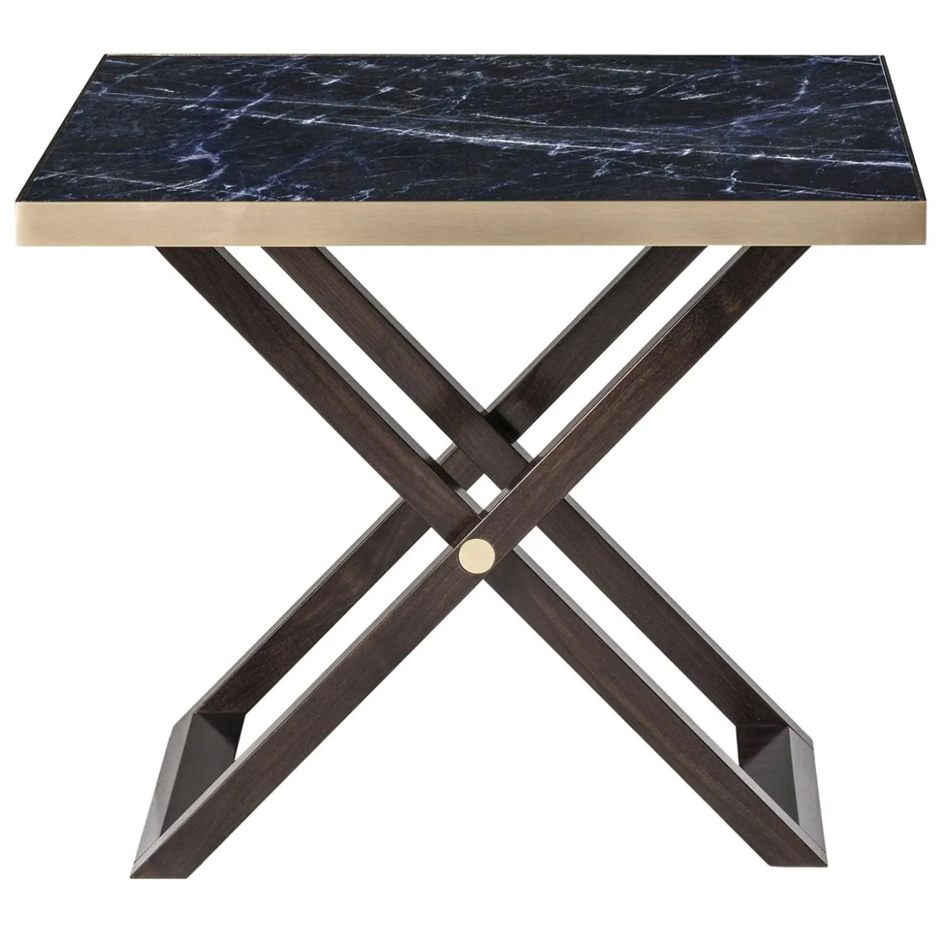 Oreste is a small table with Canaletto walnut crossed legs and a tray top in sodalite. The chessboard Fair in the Armani/Casa accessories collection is designed to fit into the Oreste tray. Different and various options for Oreste table are available, please contact the Concierge for other information.